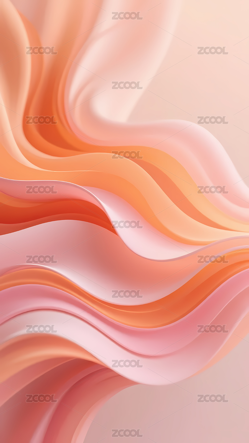 粉橙渐变波浪与淡粉背景