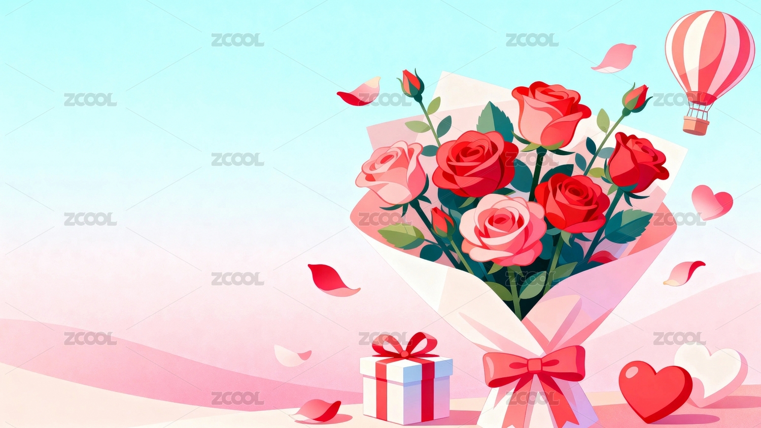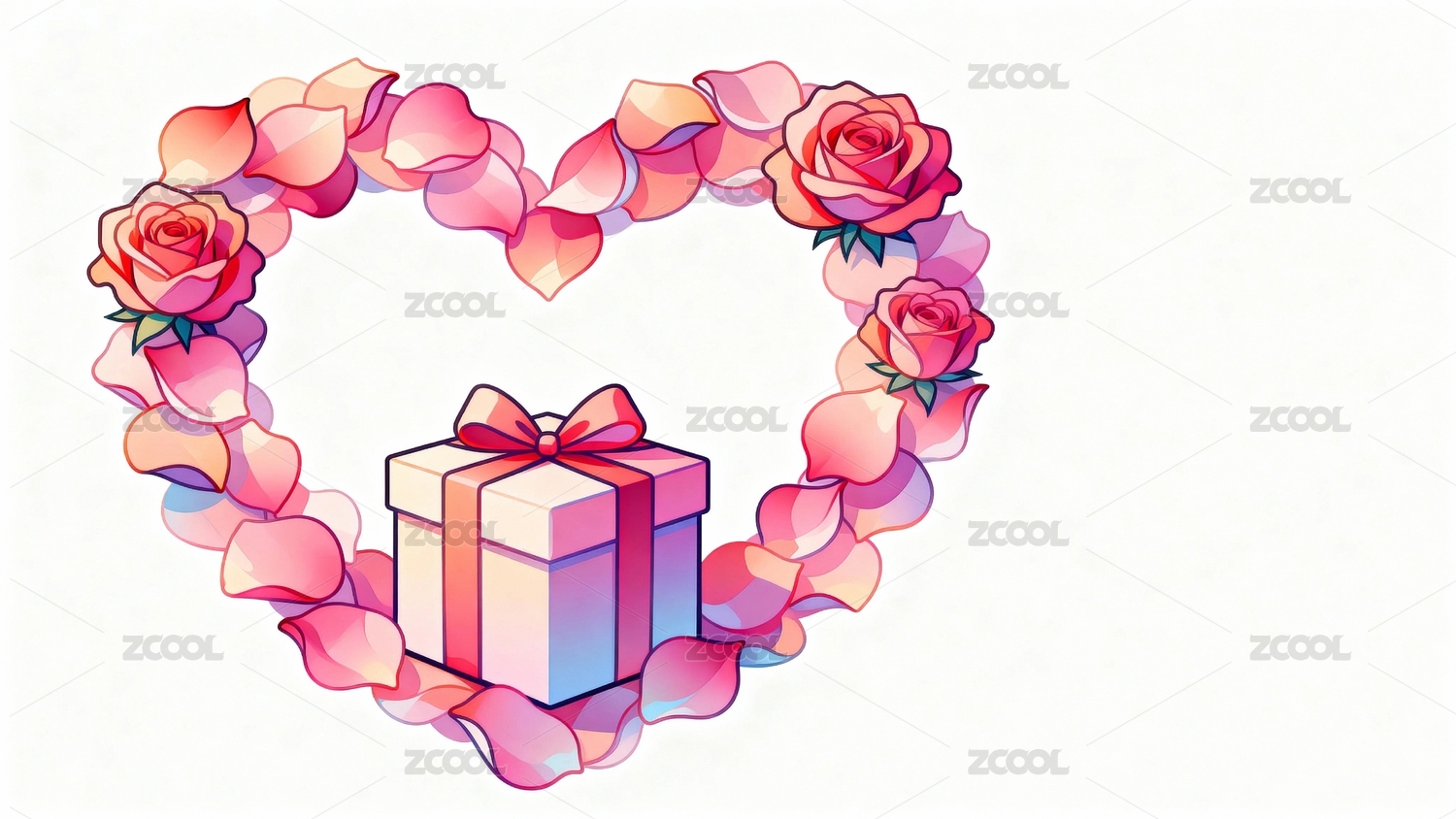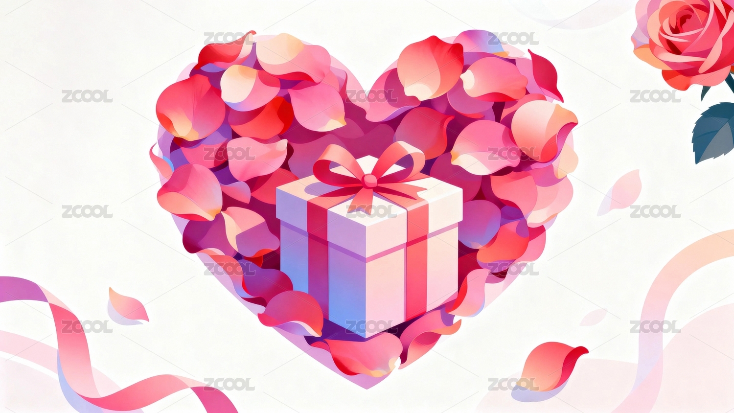 情人节七夕浪漫礼物礼品花瓣插画背景