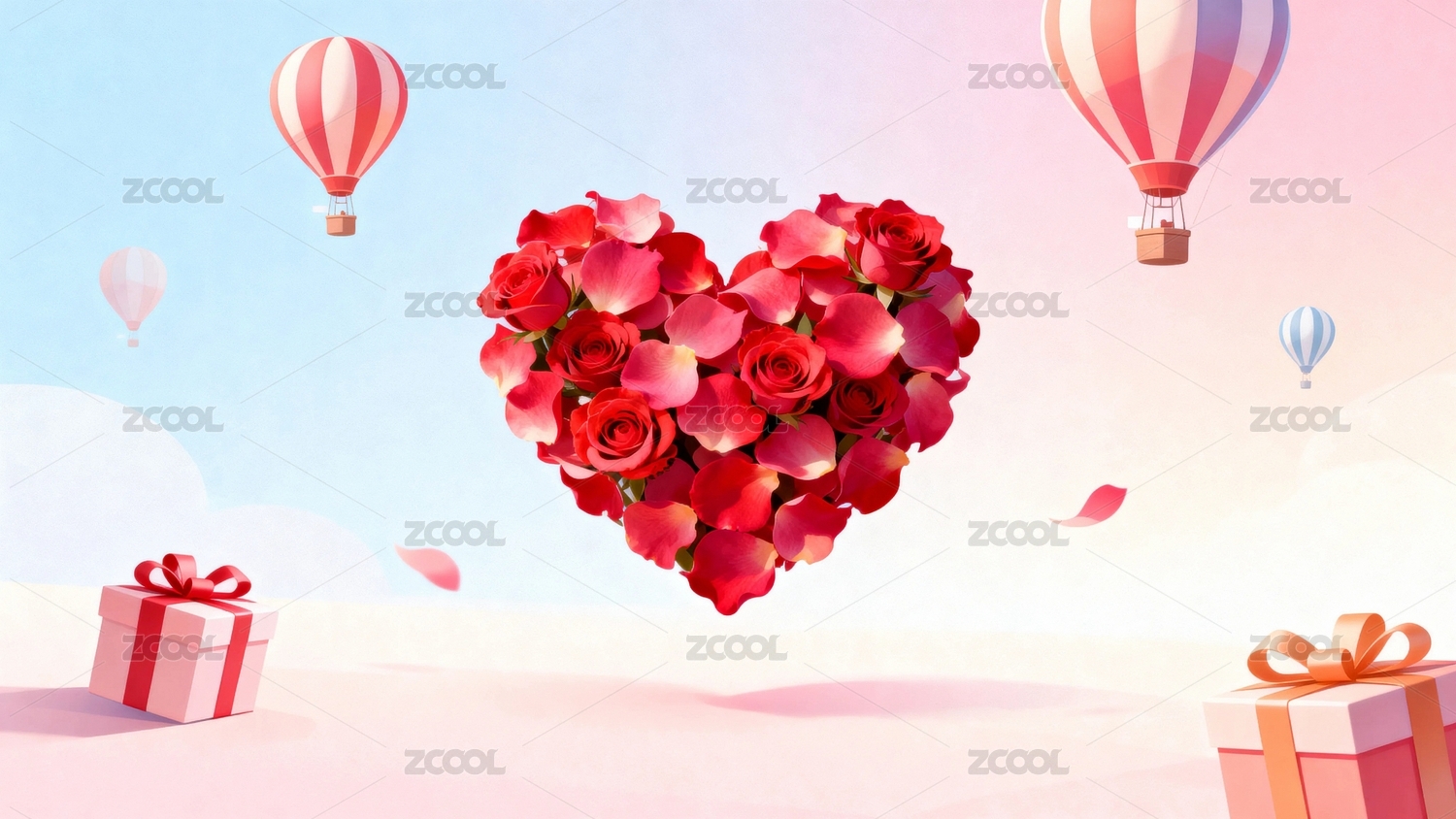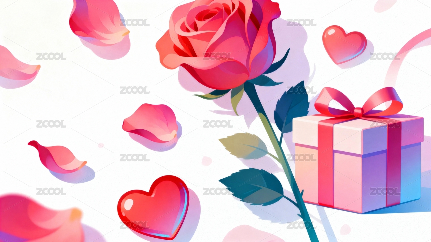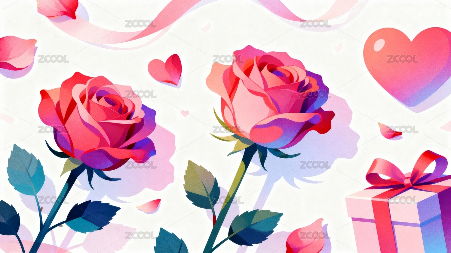 情人节七夕浪漫礼物礼品花瓣插画背景