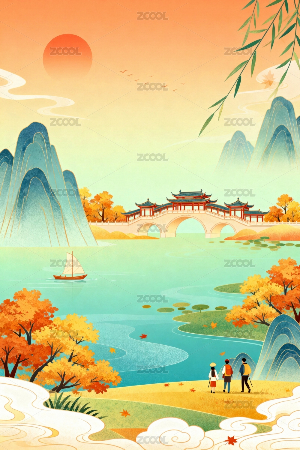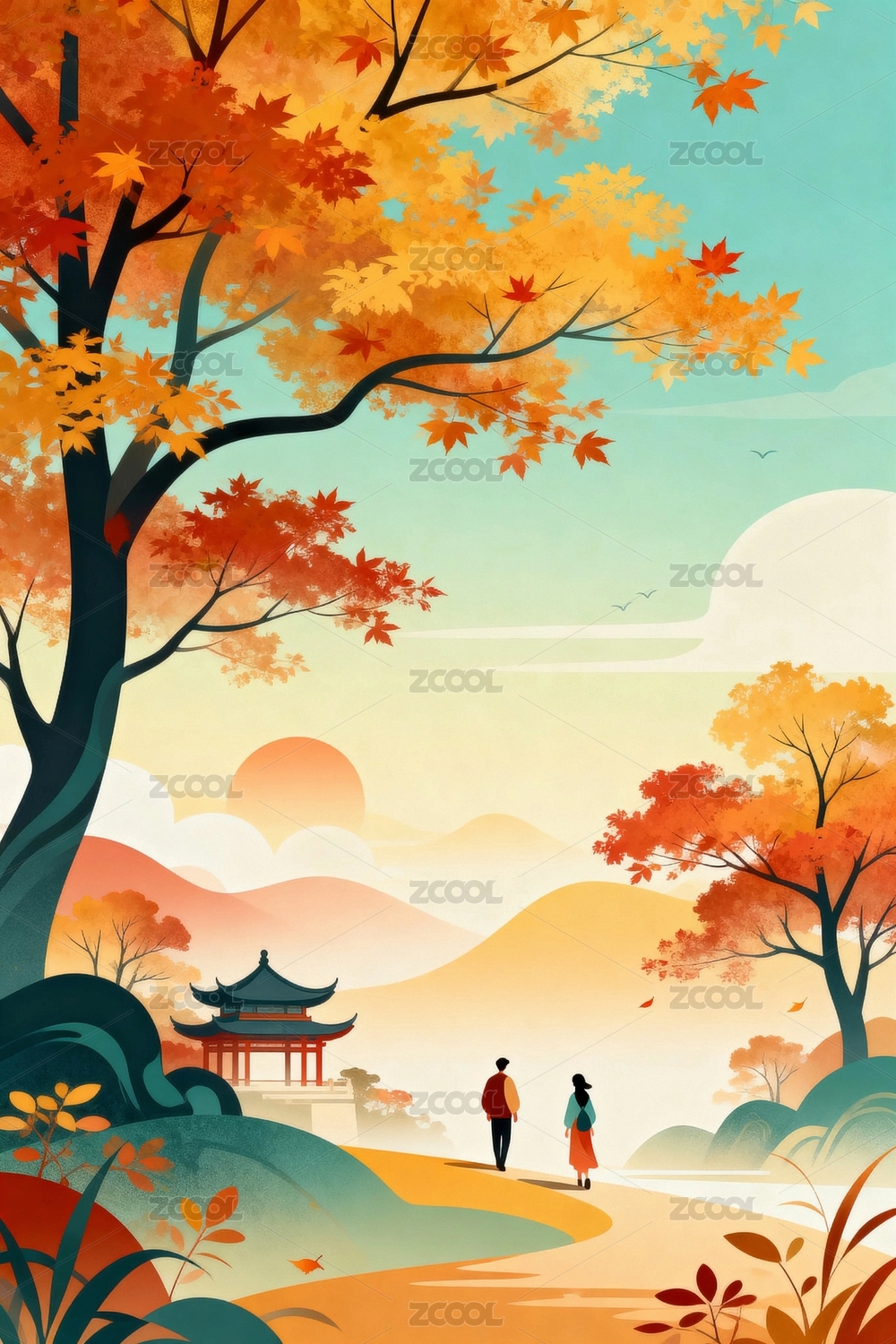 背景,素材,彩色,图案,国潮,清新,新鲜,金秋,彩绘,秋天