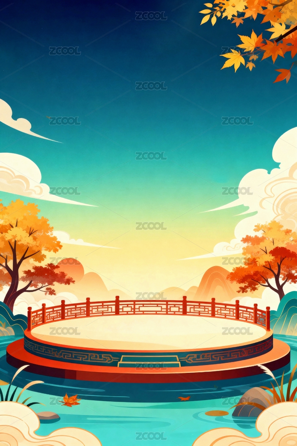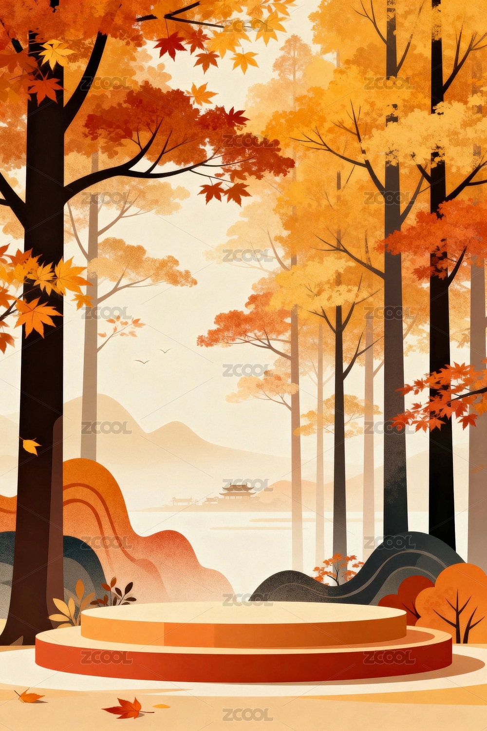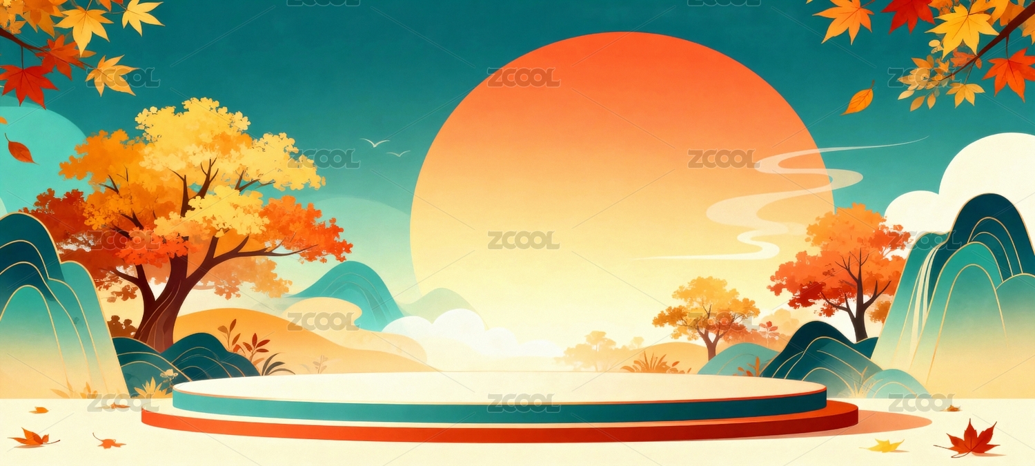 背景,素材,彩色,图案,国潮,清新,新鲜,金秋,彩绘,秋天
