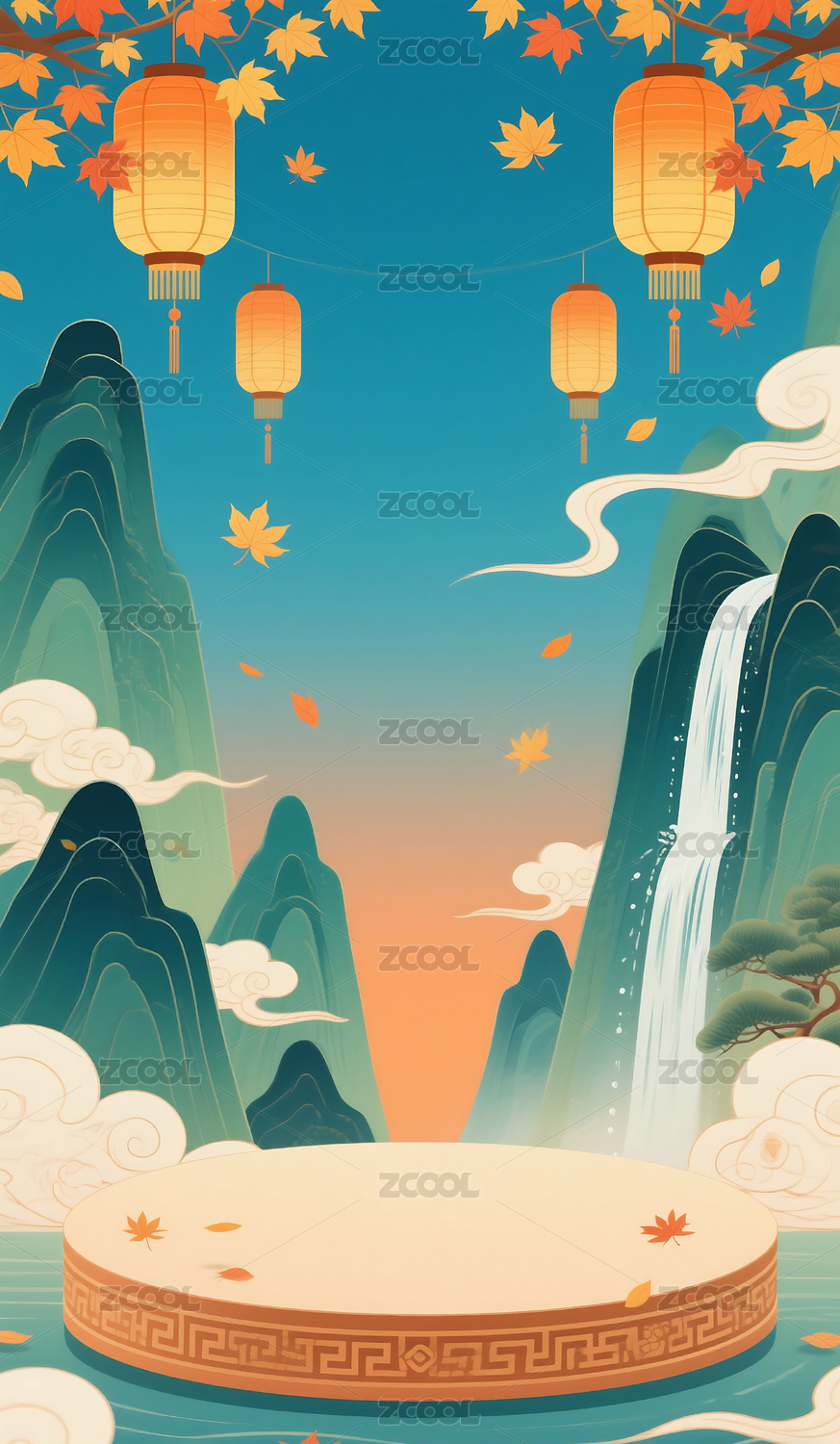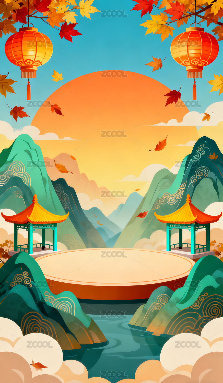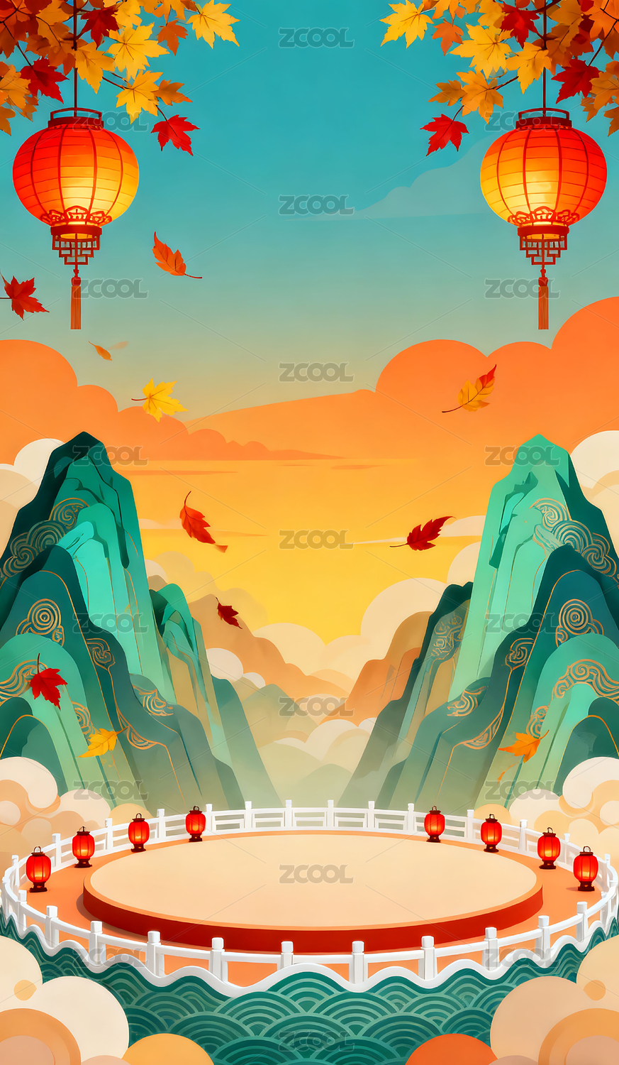 背景,素材,彩色,图案,国潮,清新,新鲜,金秋,彩绘,秋天