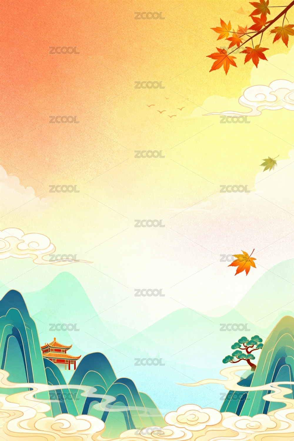 国风秋天风景背景