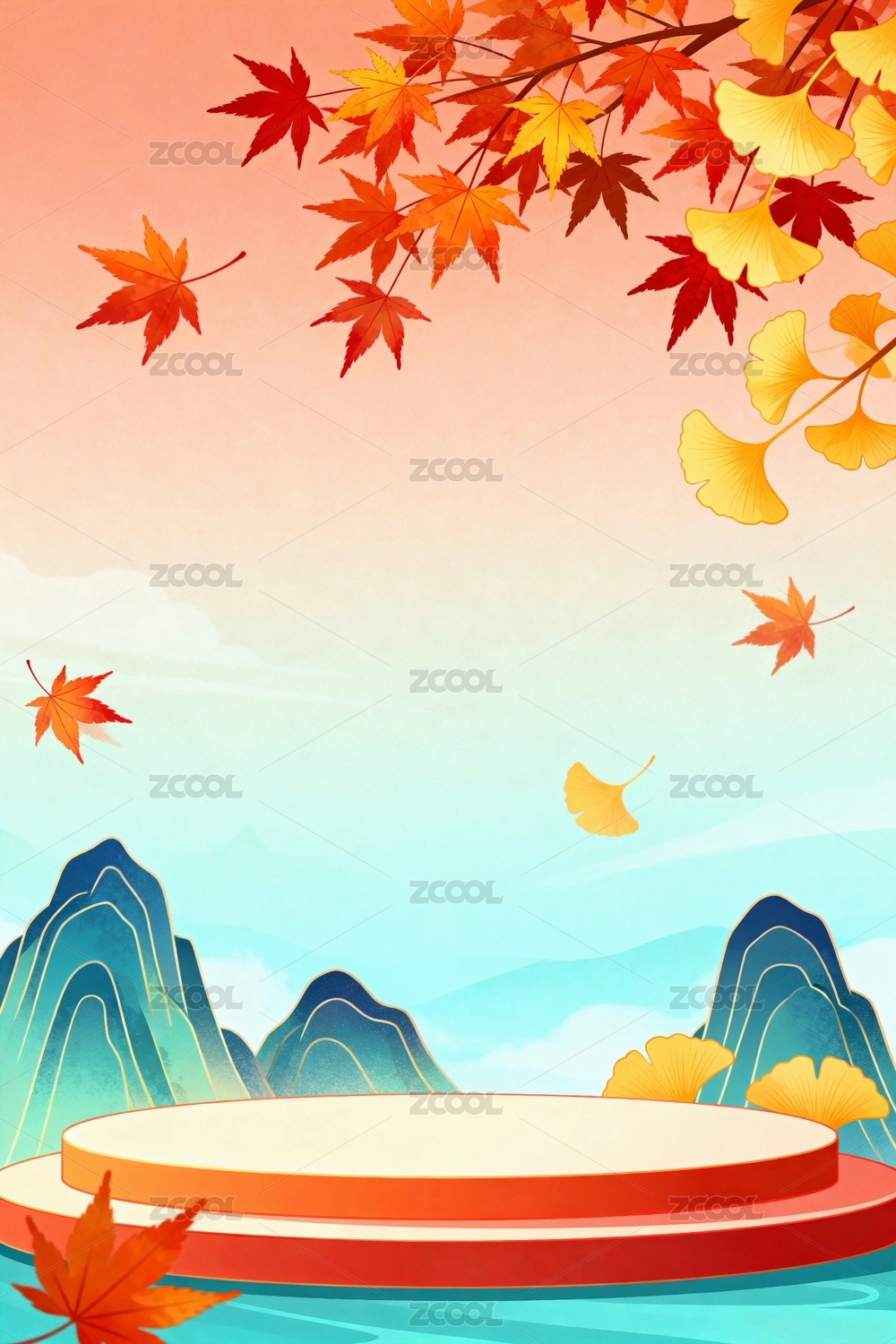 背景,素材,彩色,图案,国潮,清新,新鲜,金秋,彩绘,秋天