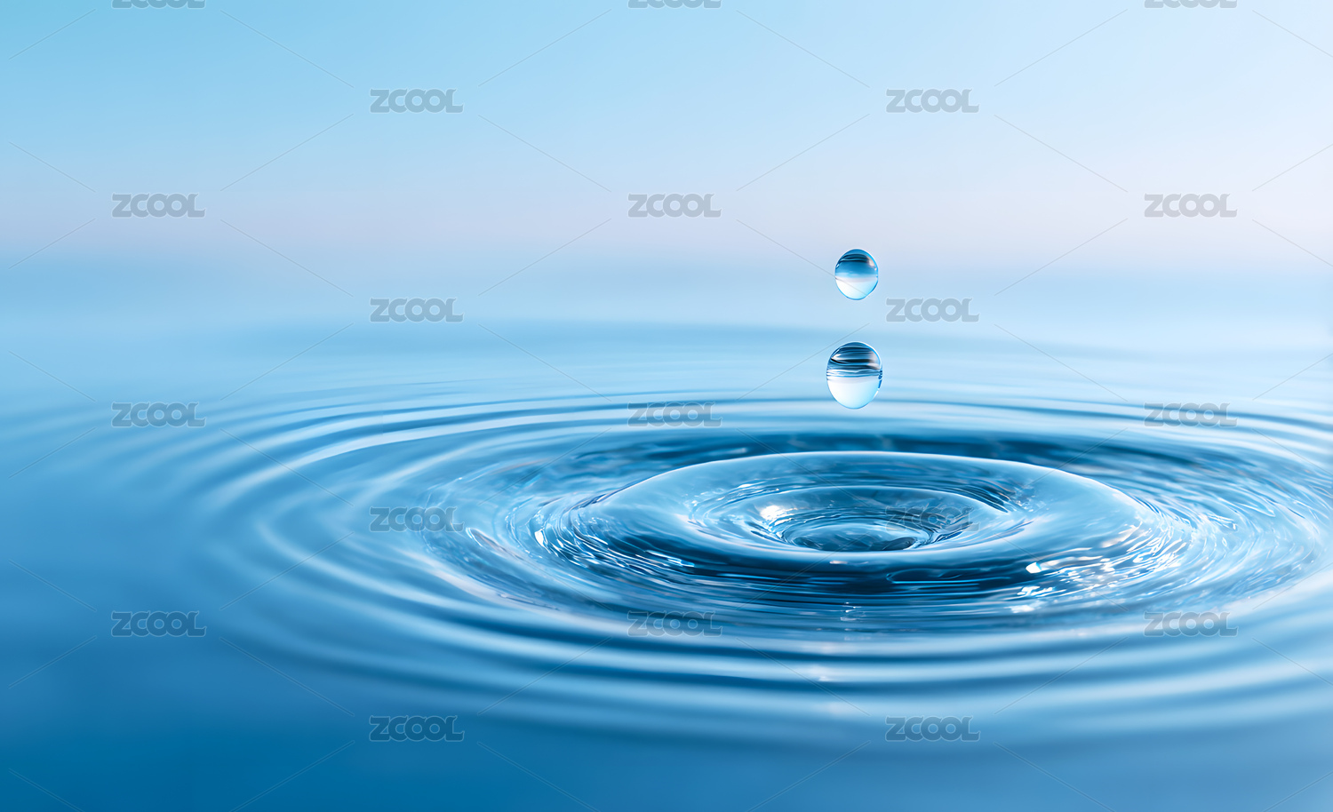 水滴坠落瞬间涟漪荡漾清澈蓝色