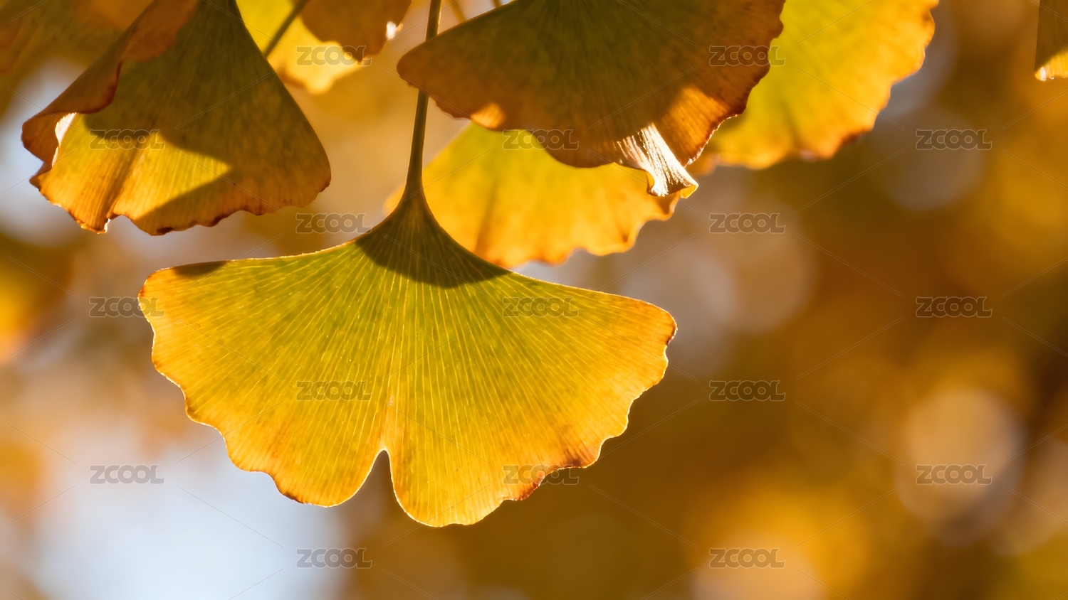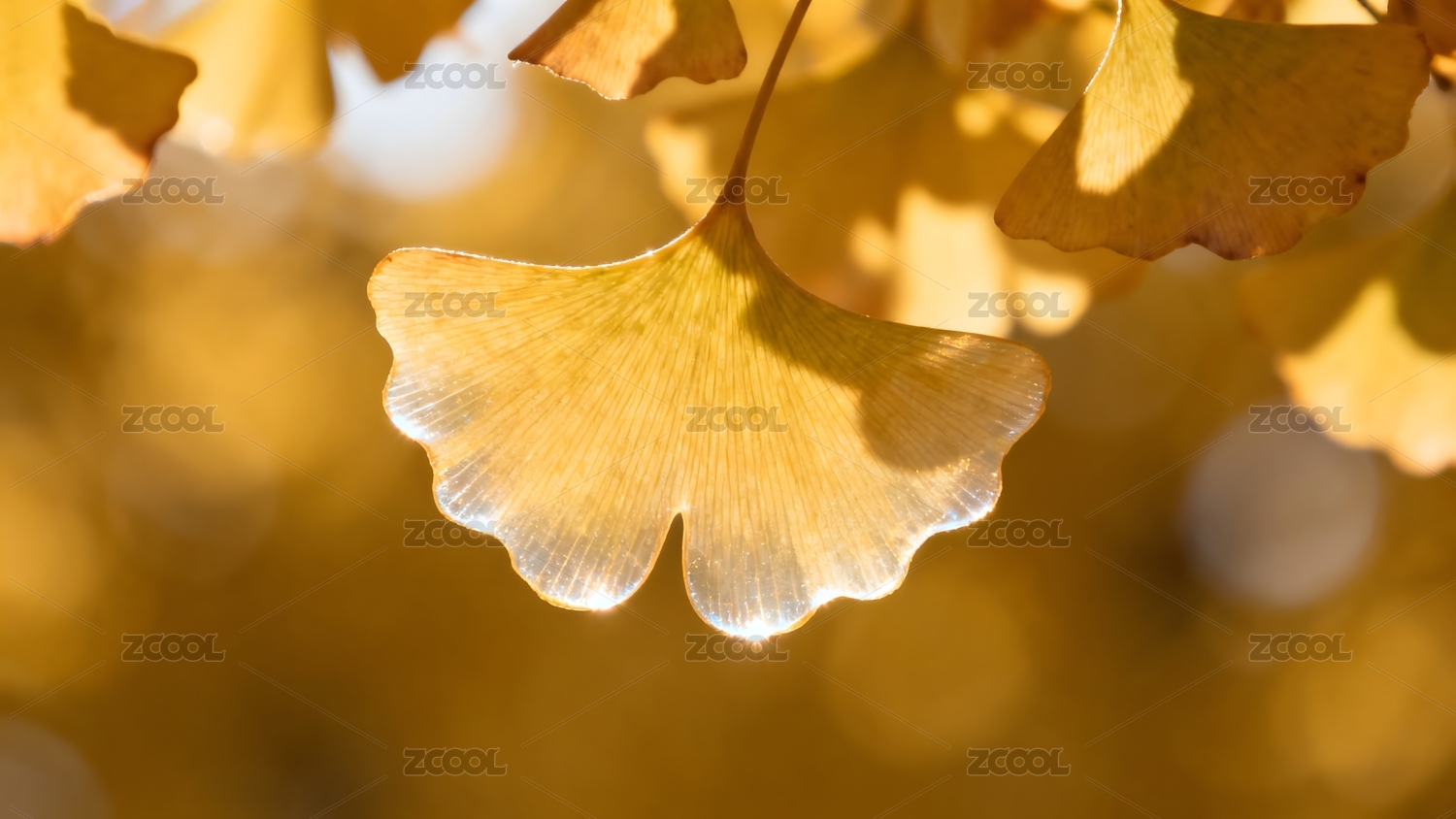 金黄银杏叶光影特写