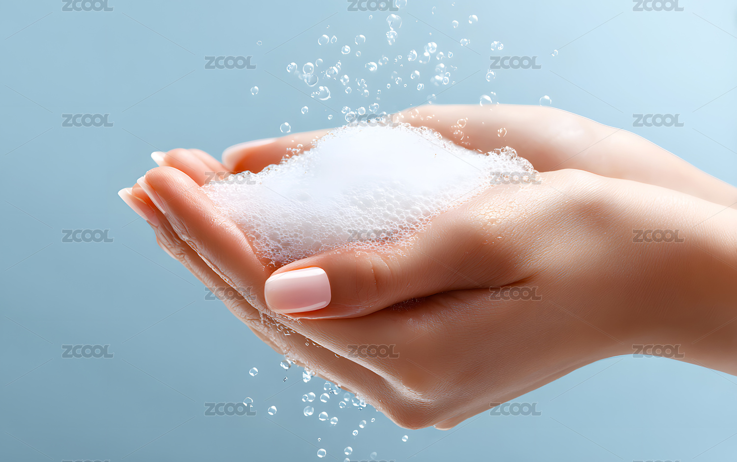 女性双手涂抹泡沫护肤画面