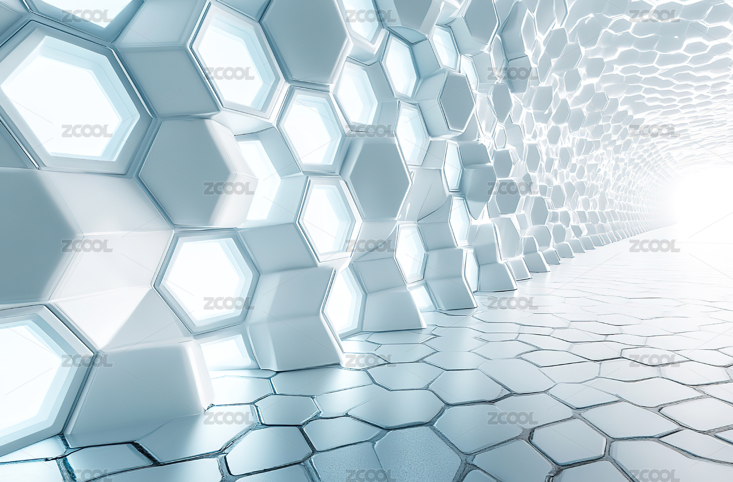 蓝色六边形科技走廊