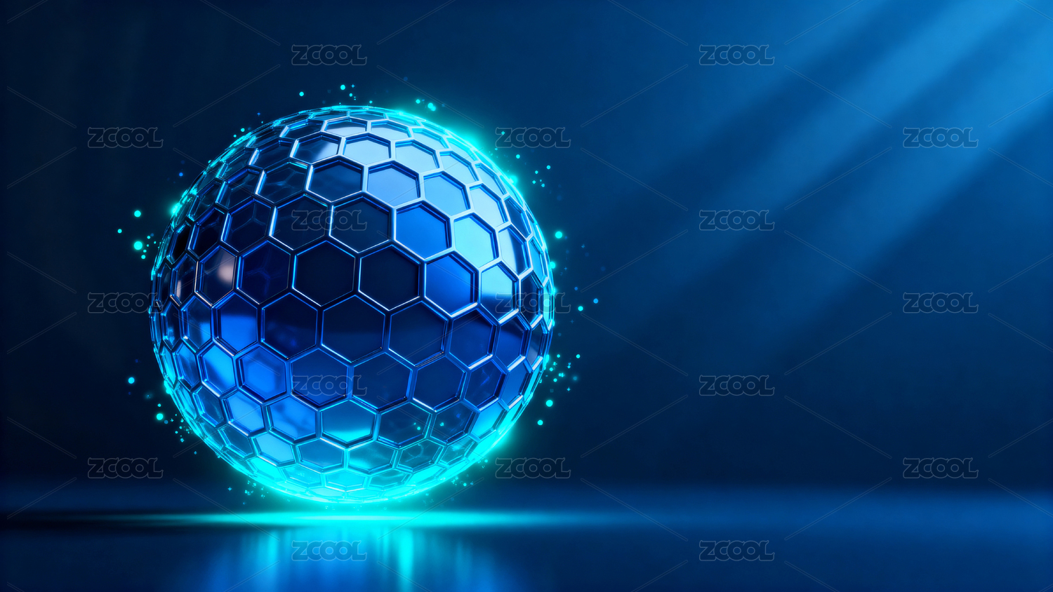 发光球体与六边形网格背景