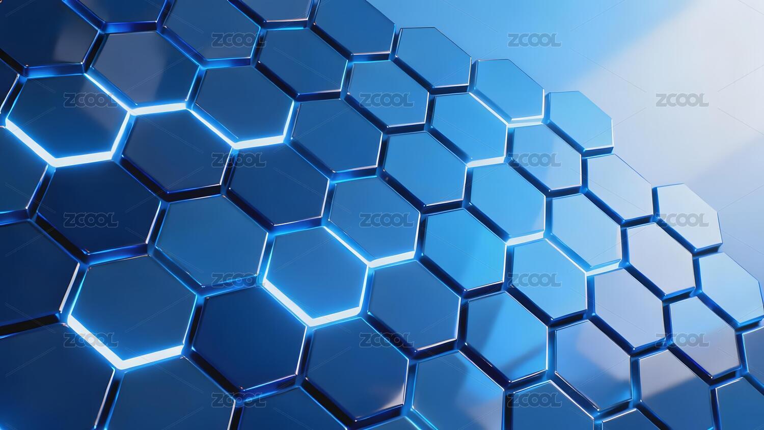 六边形,发光,蓝色,科技,几何,反射,光效,图案,背景,抽象