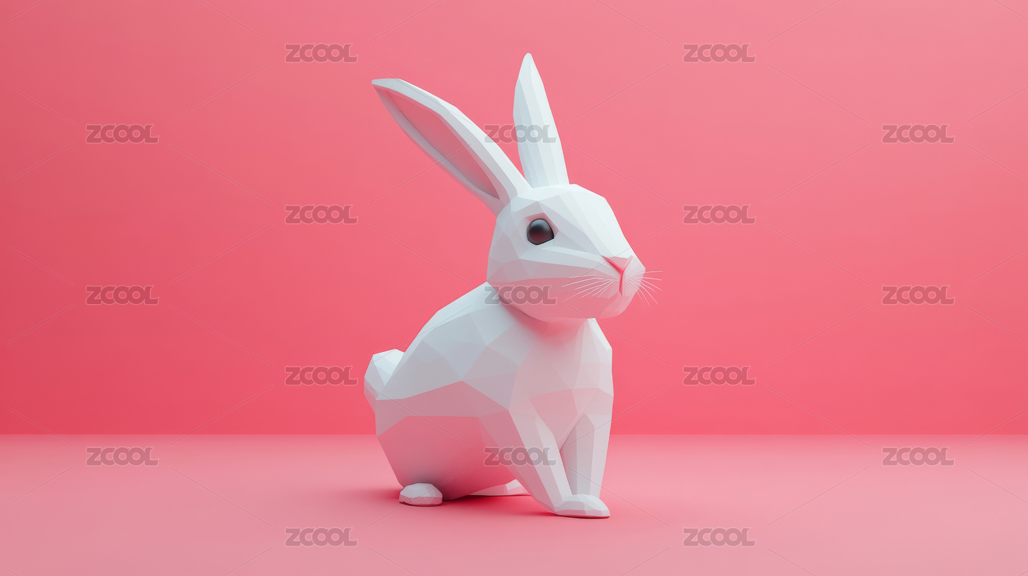 粉色背景下的低多边形兔子