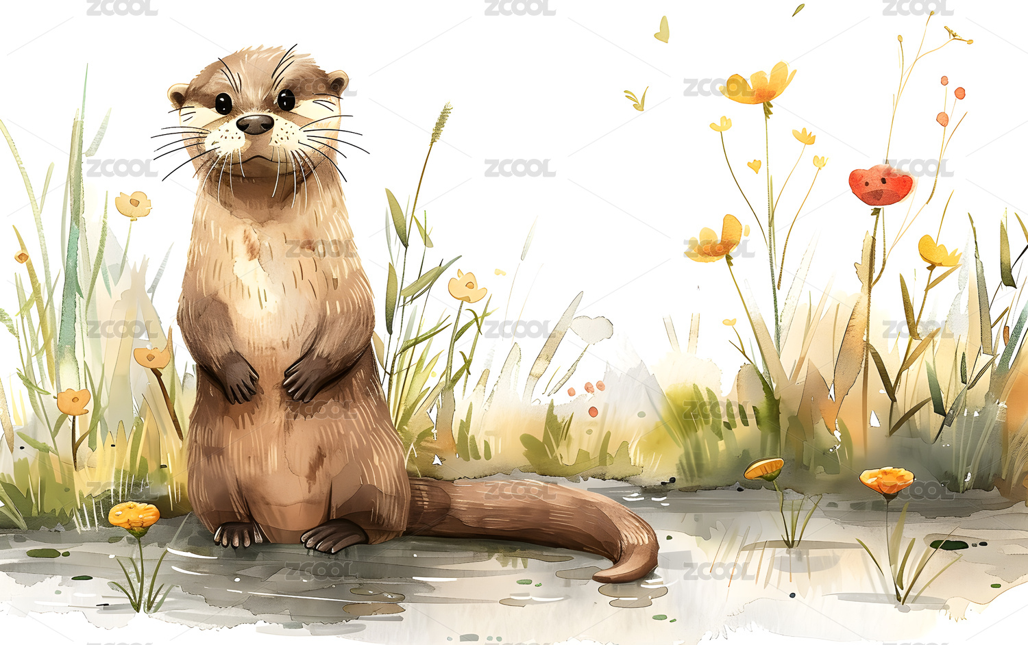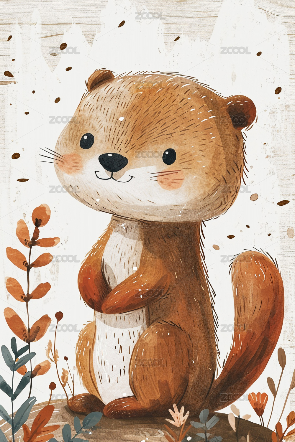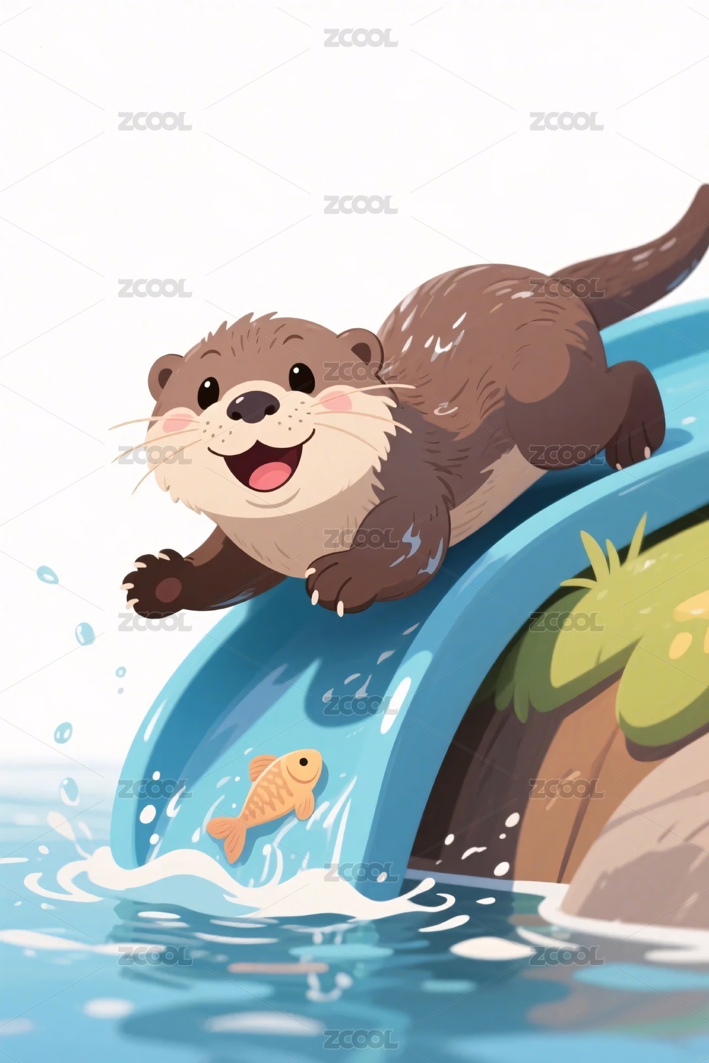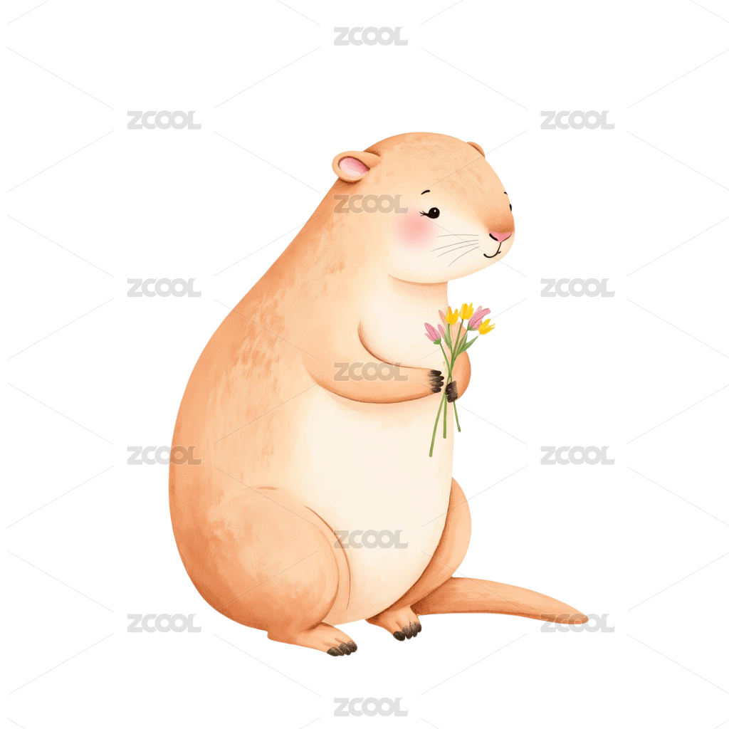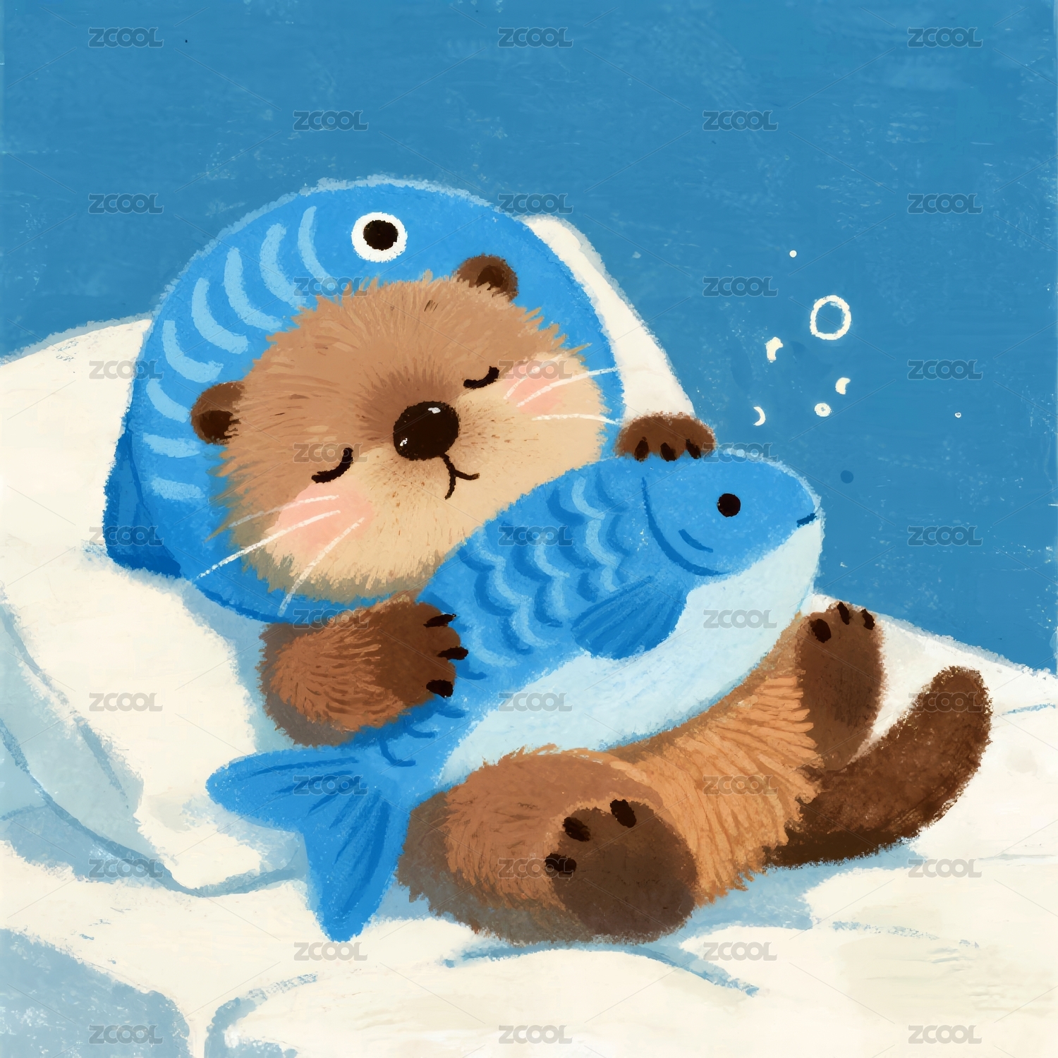 动物,可爱,呆萌,插画,创意,土拨鼠,小鱼,悠闲,蓝色背景