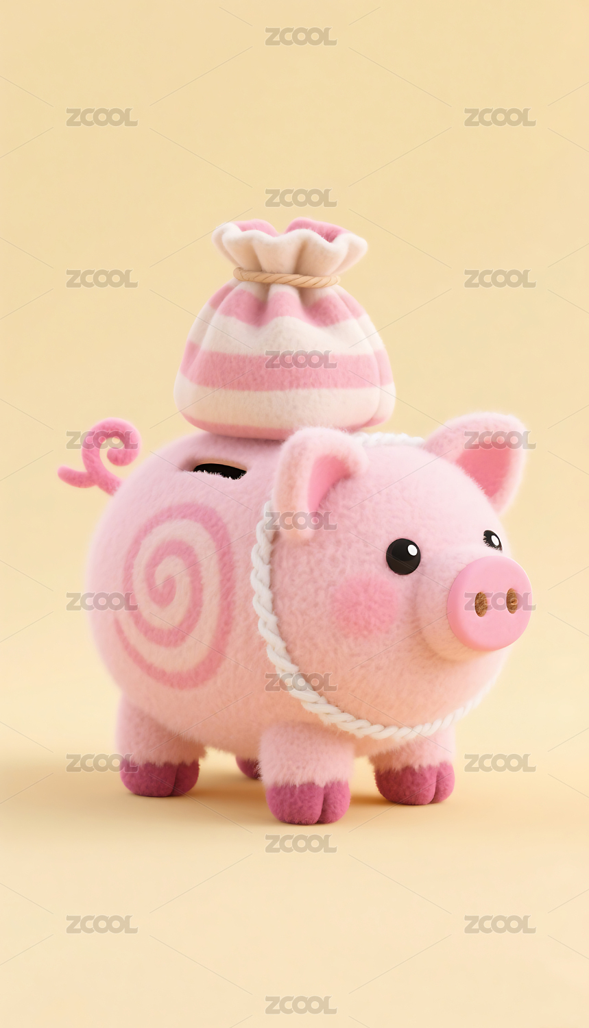3D建模羊毛毡毛绒绒质感猪存钱罐模型
