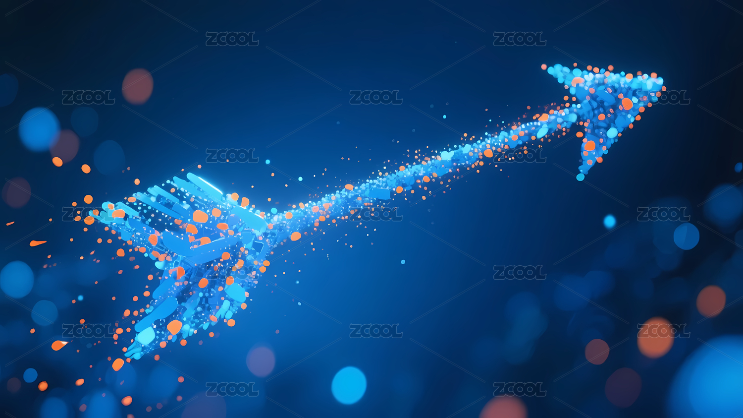 蓝色发光粒子组成向上增长箭头金融商务背景