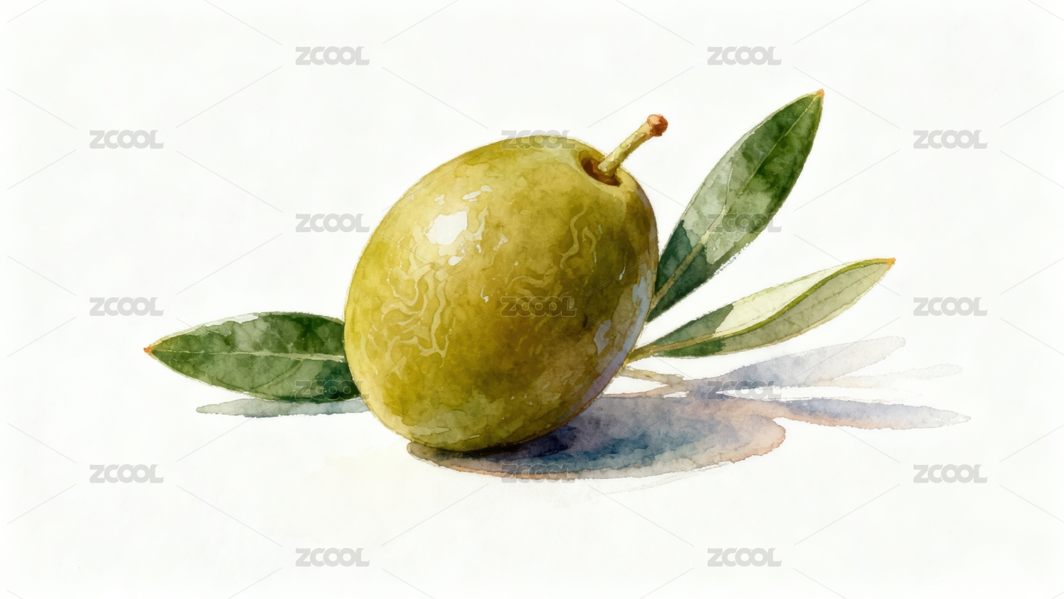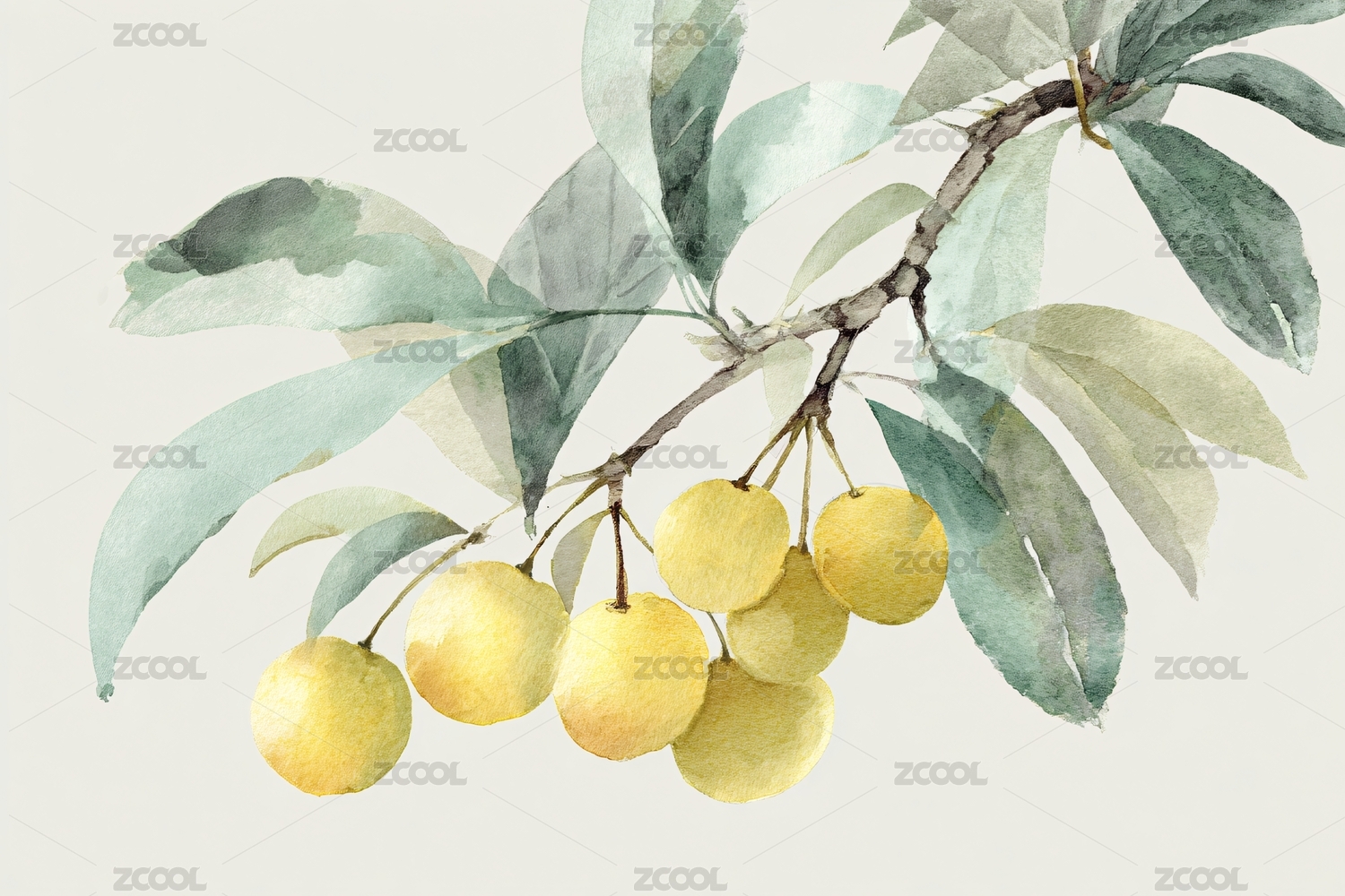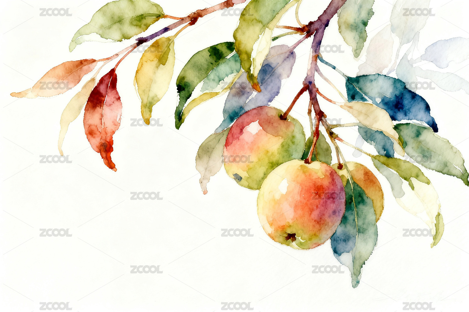 自然,绿色,植物,叶子,水彩,叶脉,绘画,黄色,枝干,水果