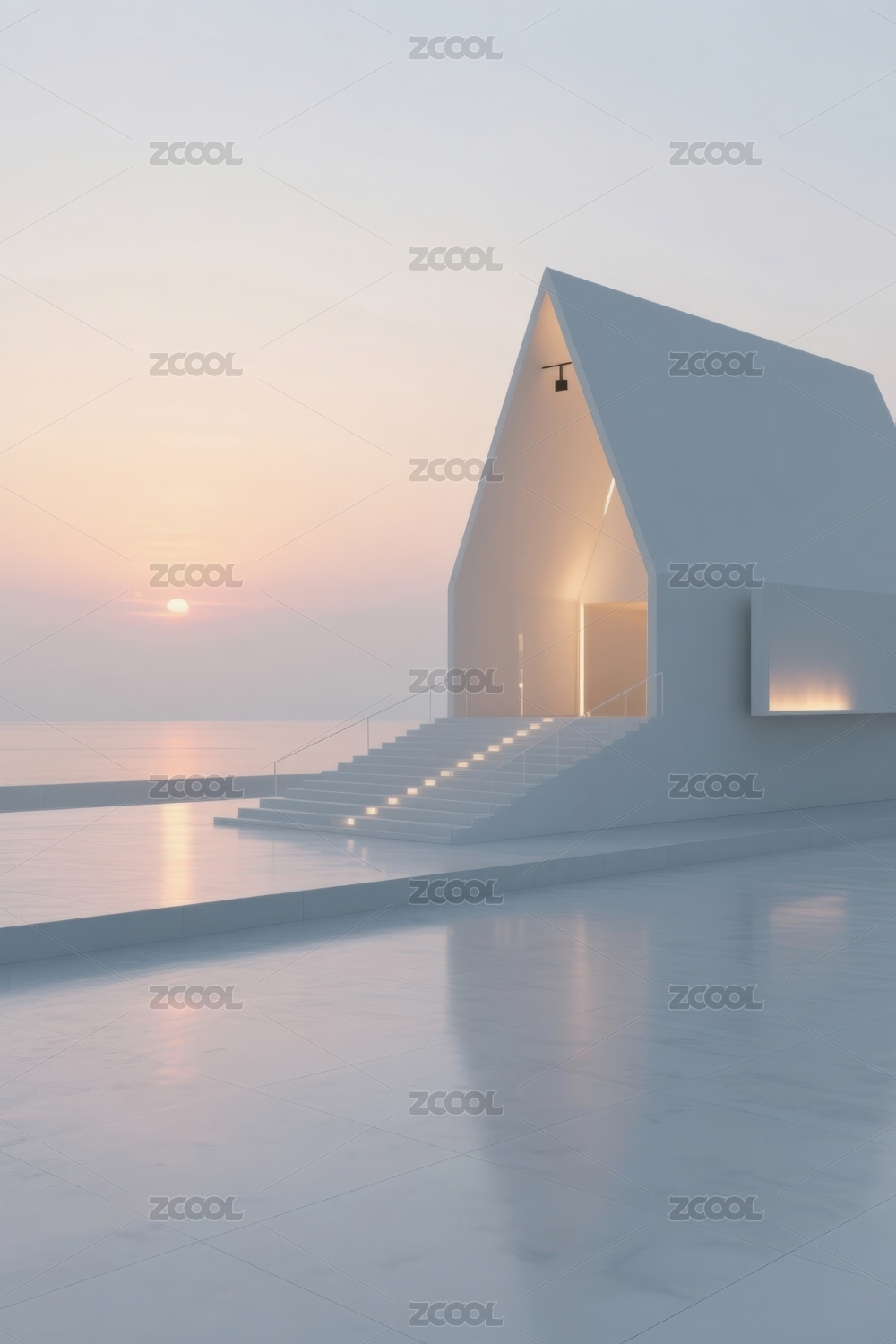 灯光,建筑,现代,白色,日落,太阳,地面,楼梯,入口,简约