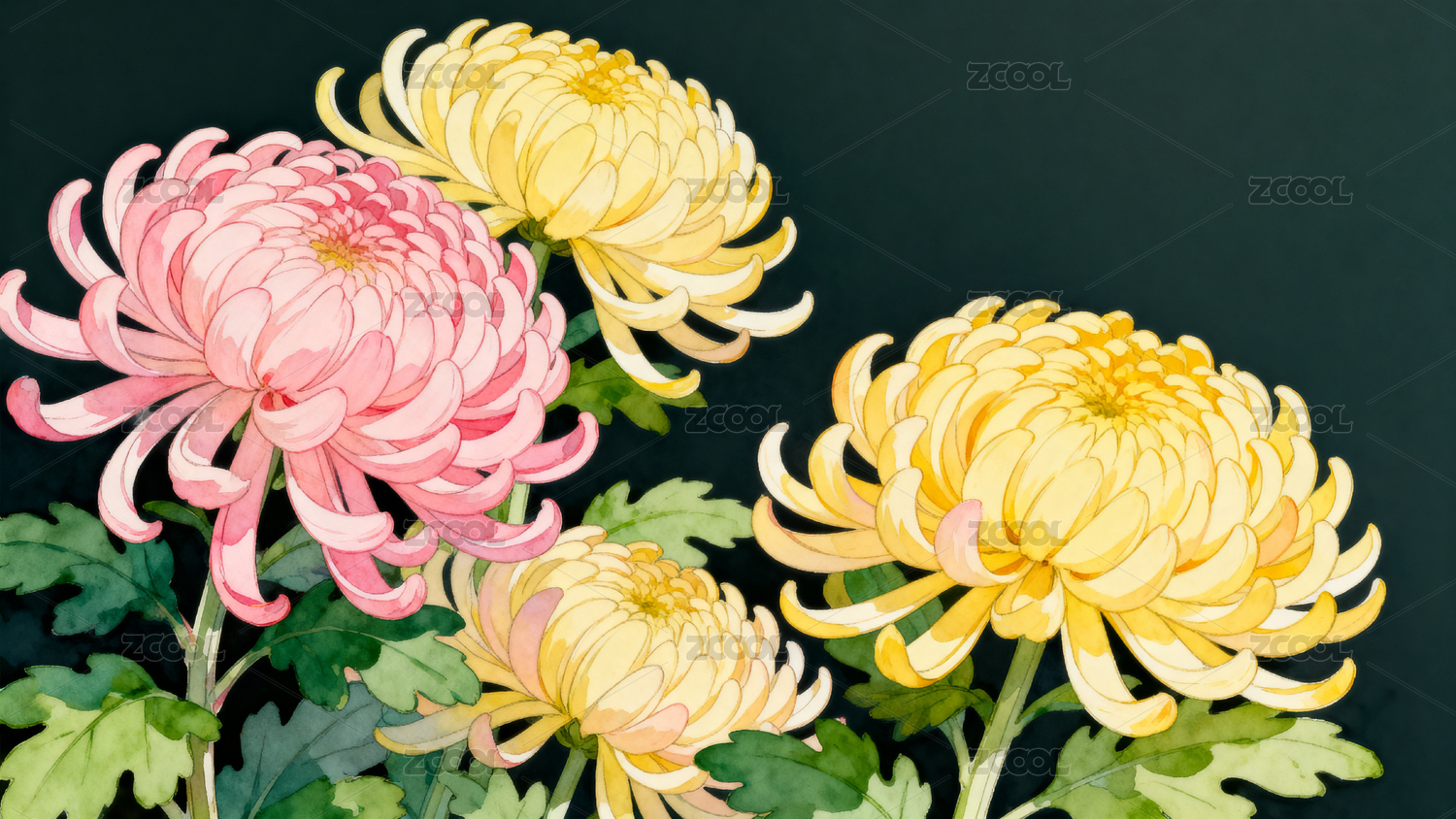 水彩绘菊花细节特写