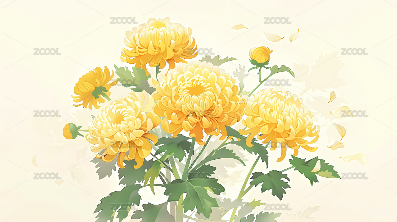 粉黄菊花插画展示