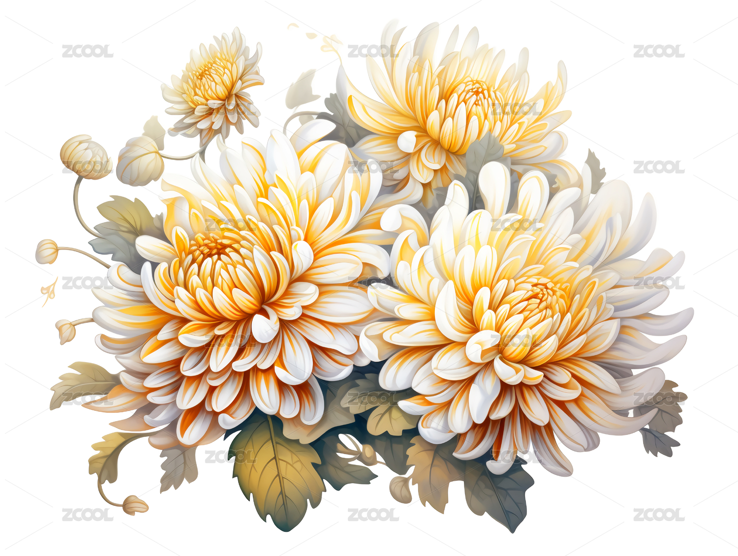 水彩菊花花卉插画