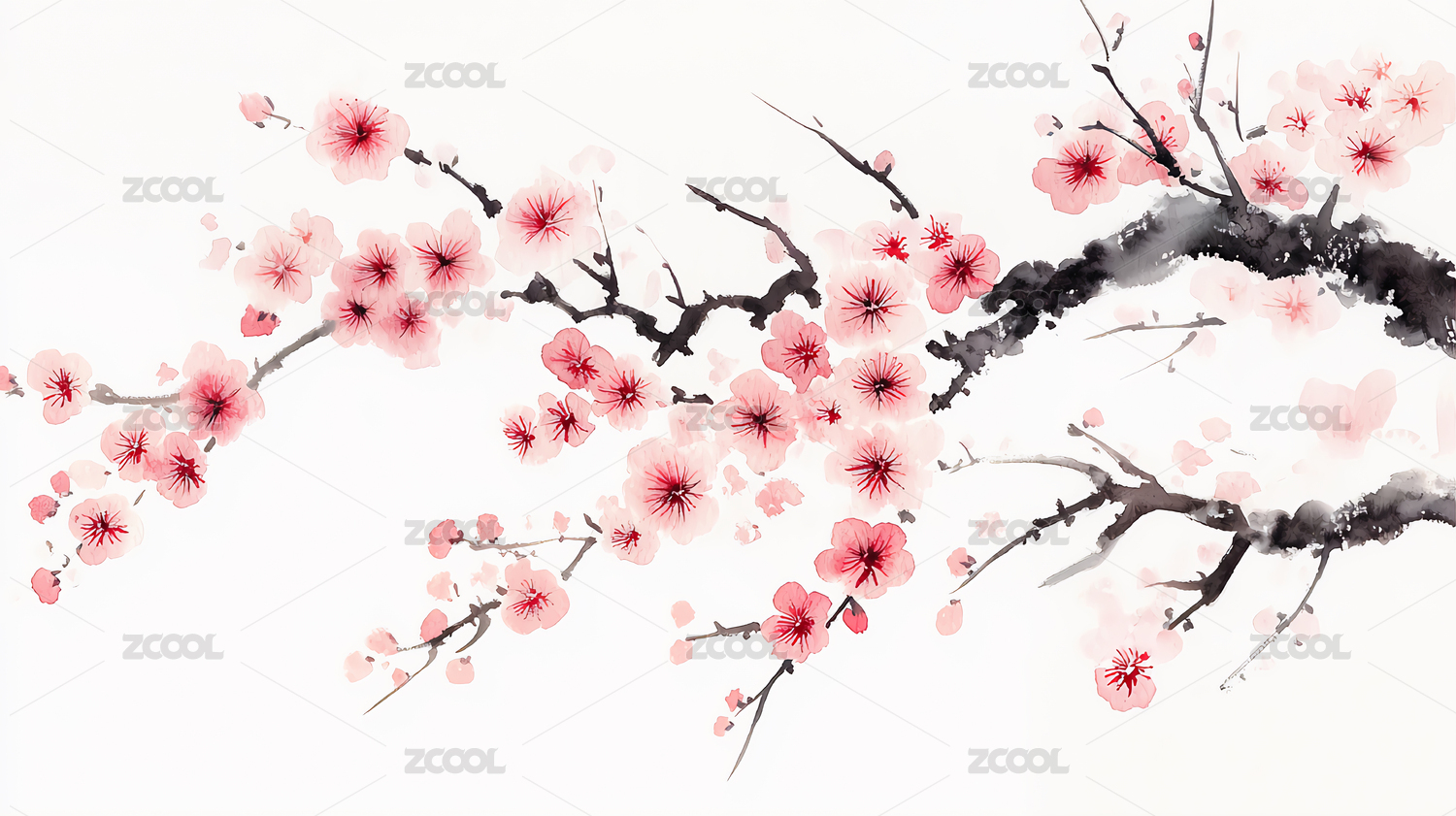花瓣,花卉,花蕊,枝干,花枝,花苞,叶片,绿叶,水墨,枝条