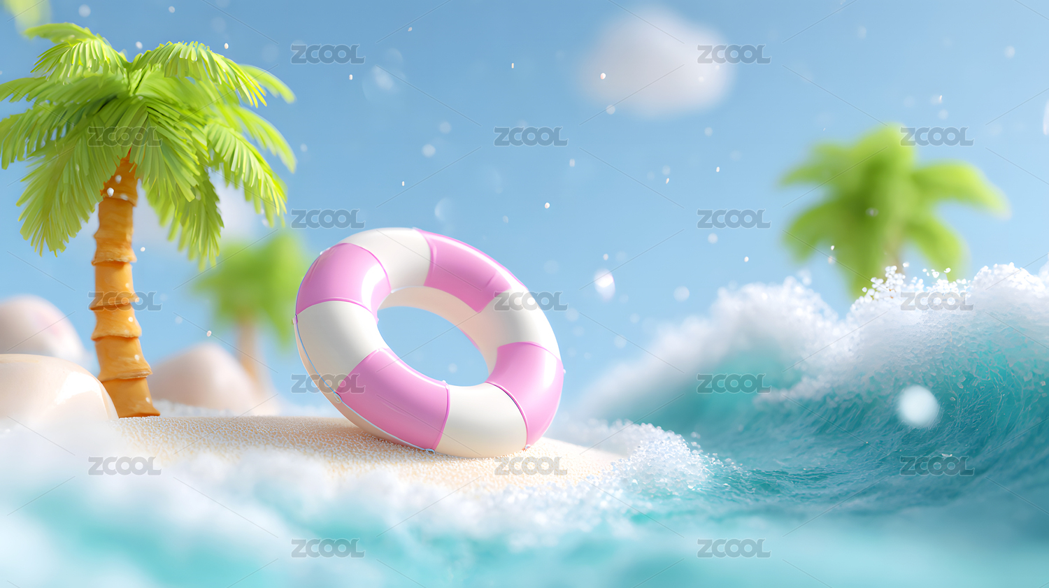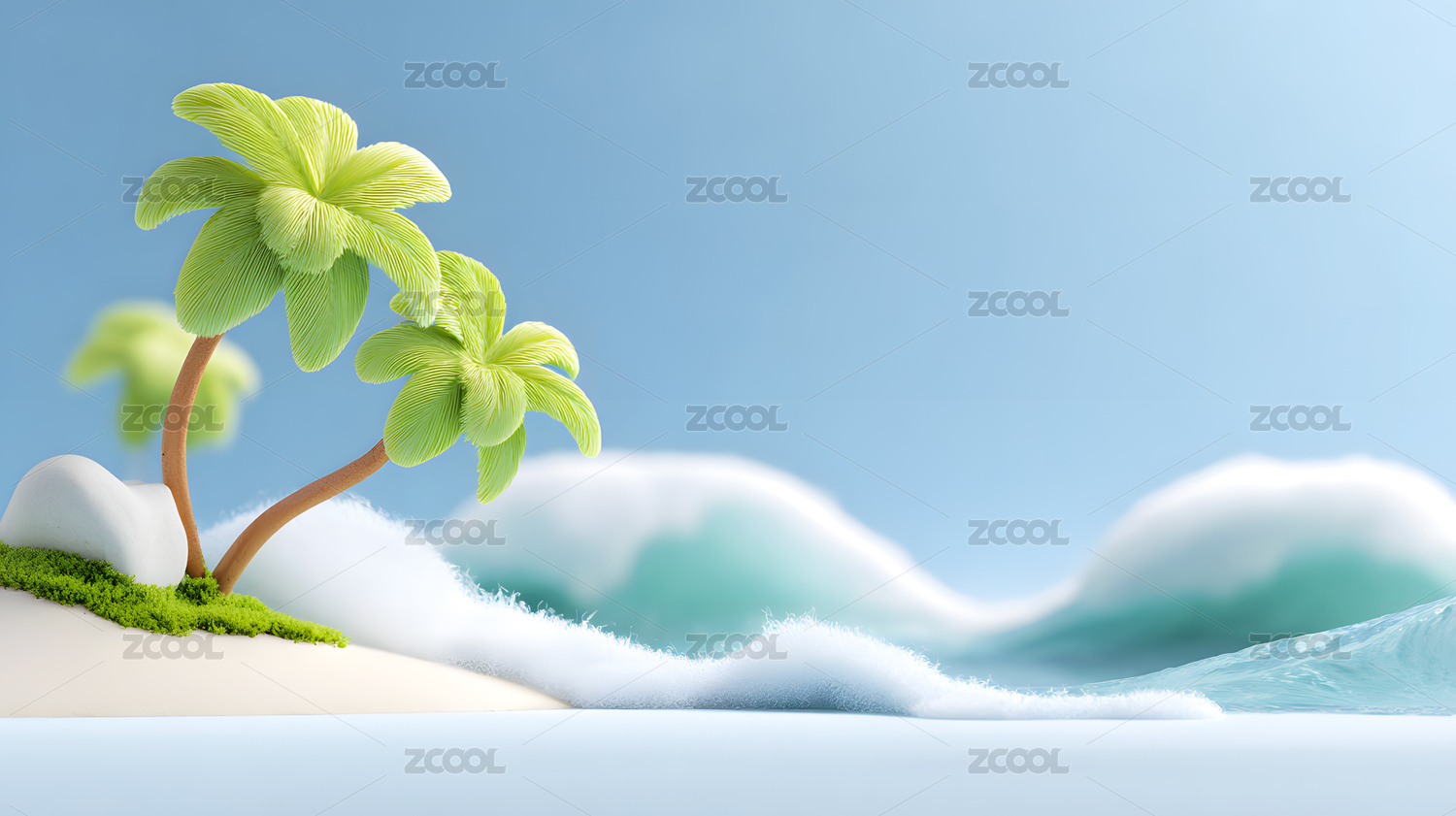 海浪拍打沙滩椰树岛屿 宁静海岛风光