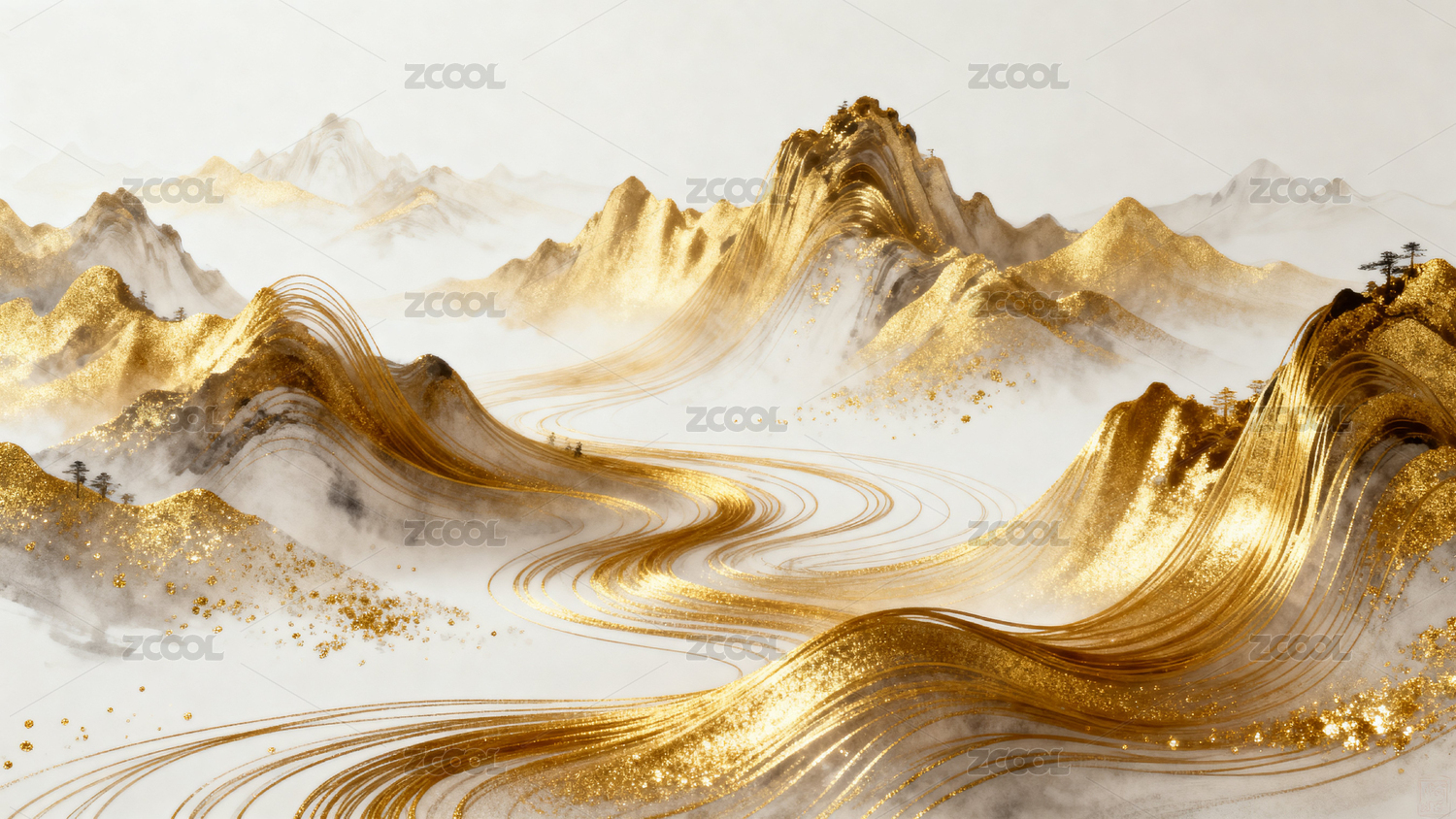 金色流沙线条山水图