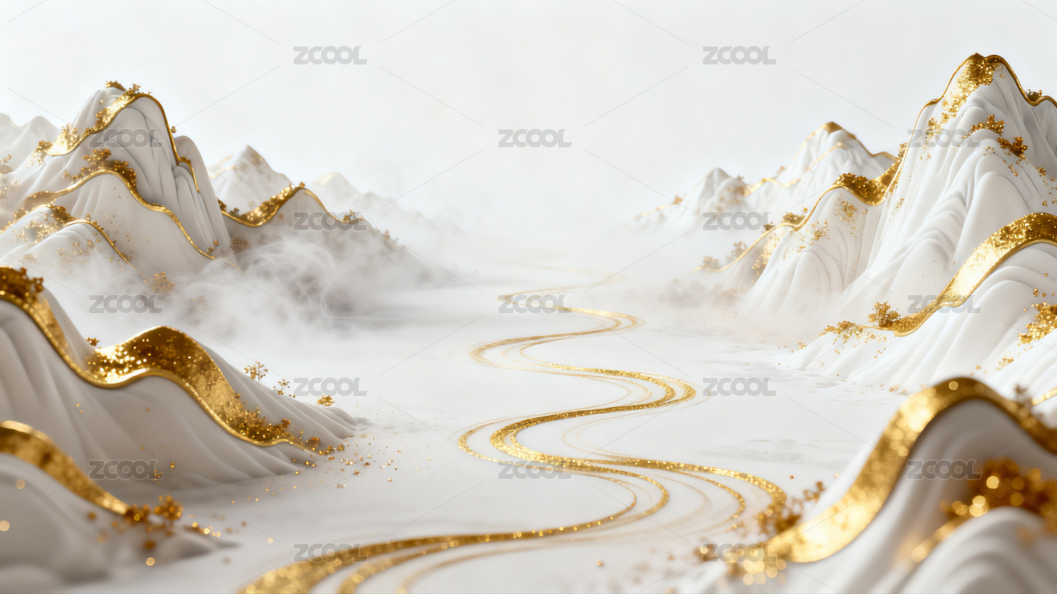 白色,金边,山峦,群山,山脉,远山,山水,3D插画,国风,无人