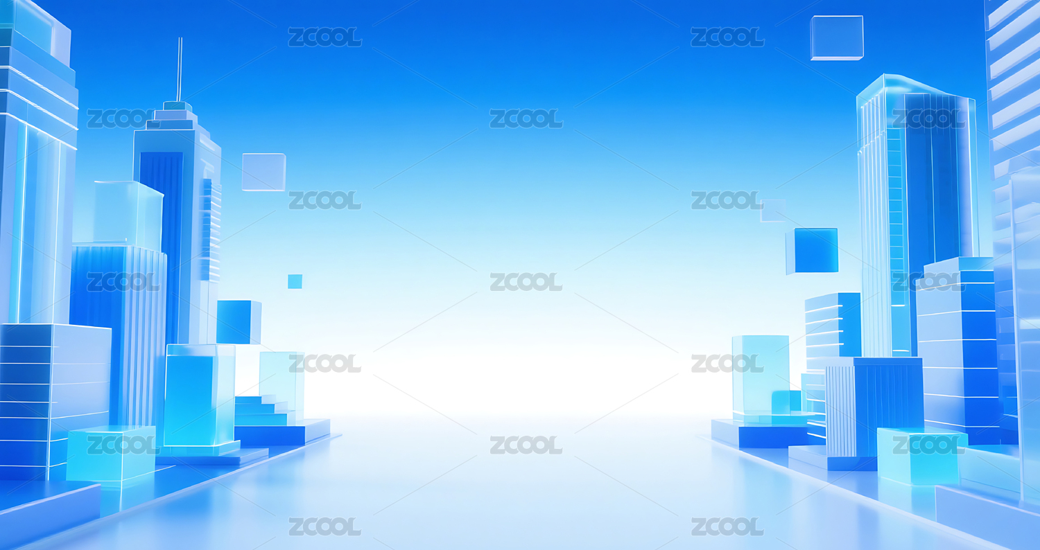 蓝色商务科技未来玻璃质感图形设计城市建筑