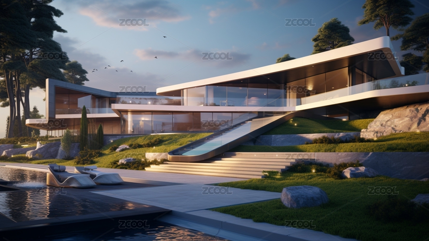 现代,极简,别墅,豪宅,建筑,落地窗,户外,简约,滨海