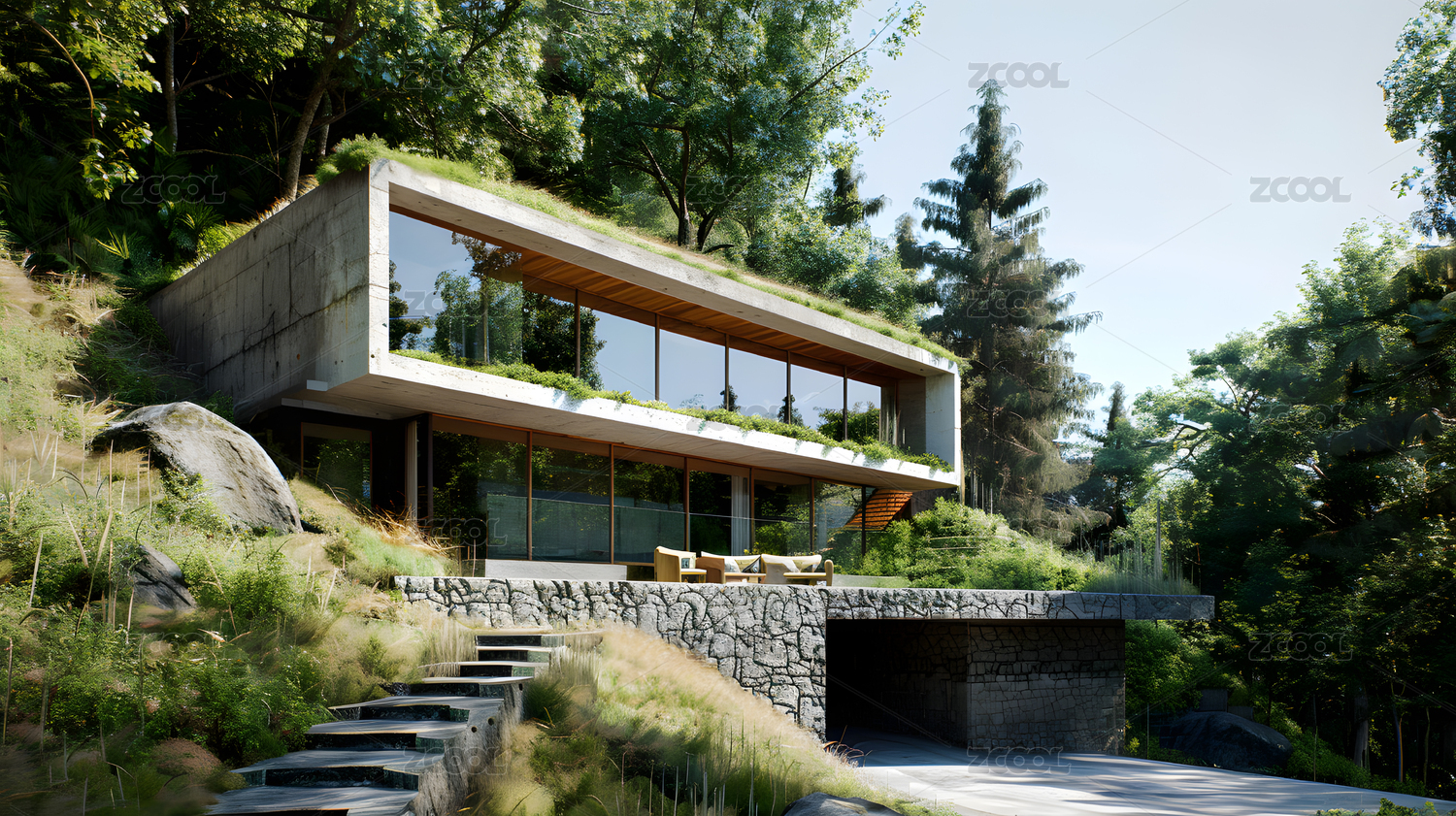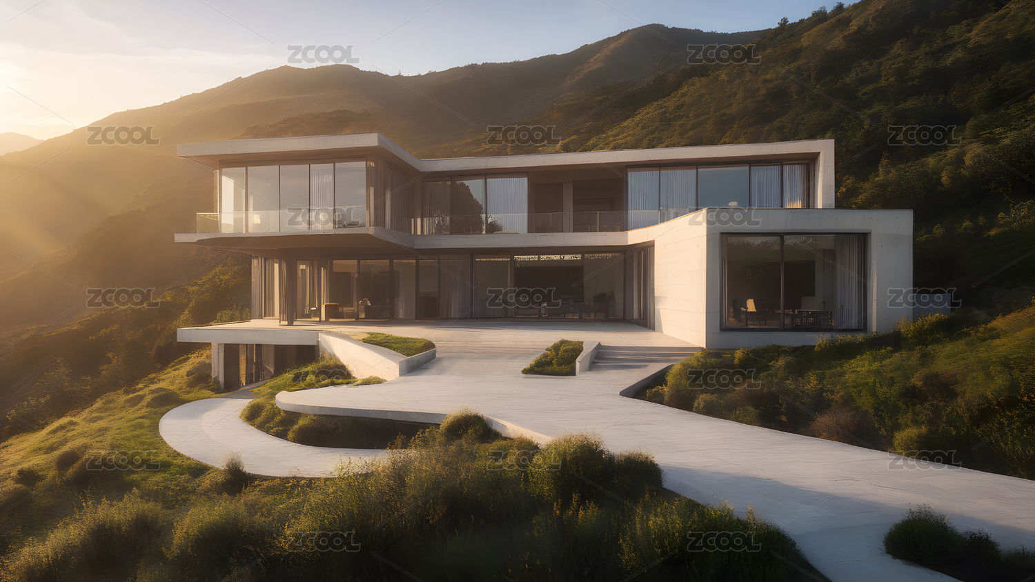 现代简约山景别墅风景