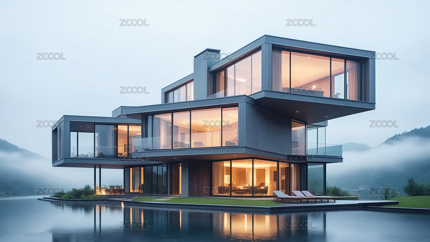 湖畔现代别墅静谧湖景豪宅