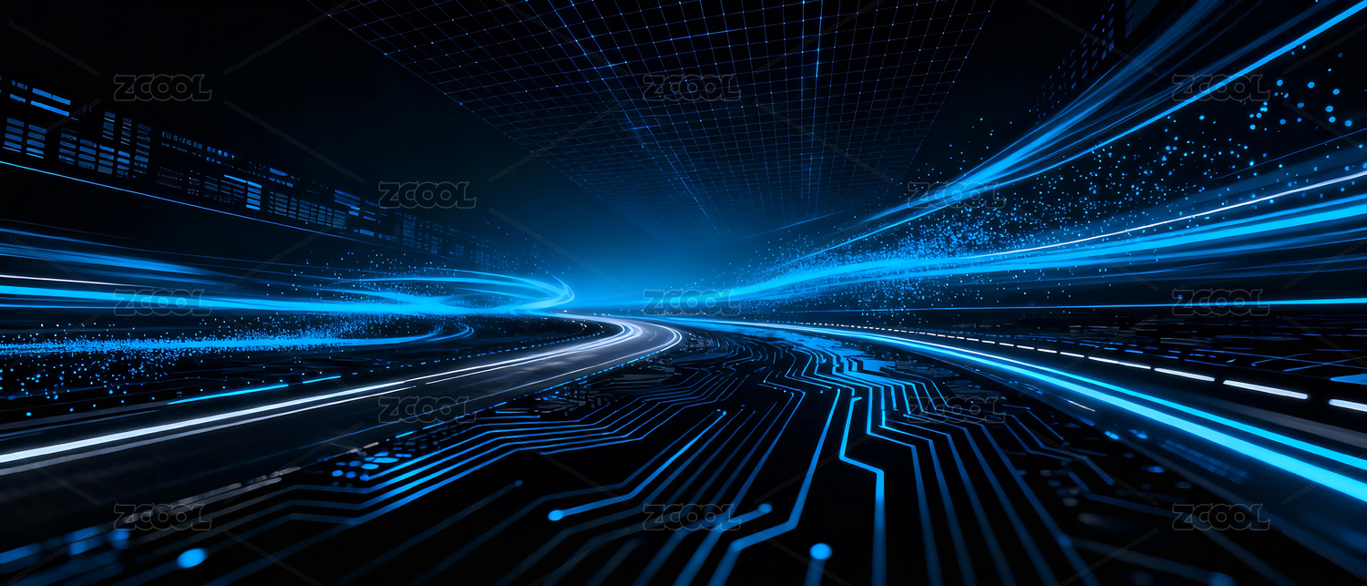 穿梭夜空的数据流道路场景