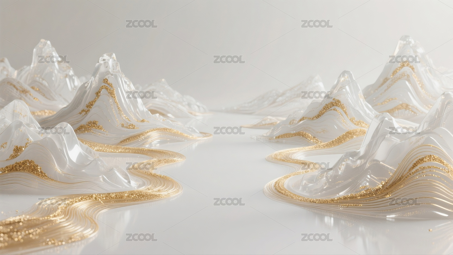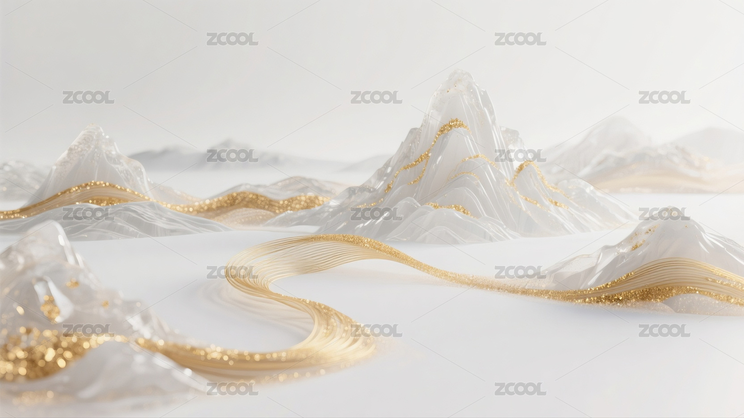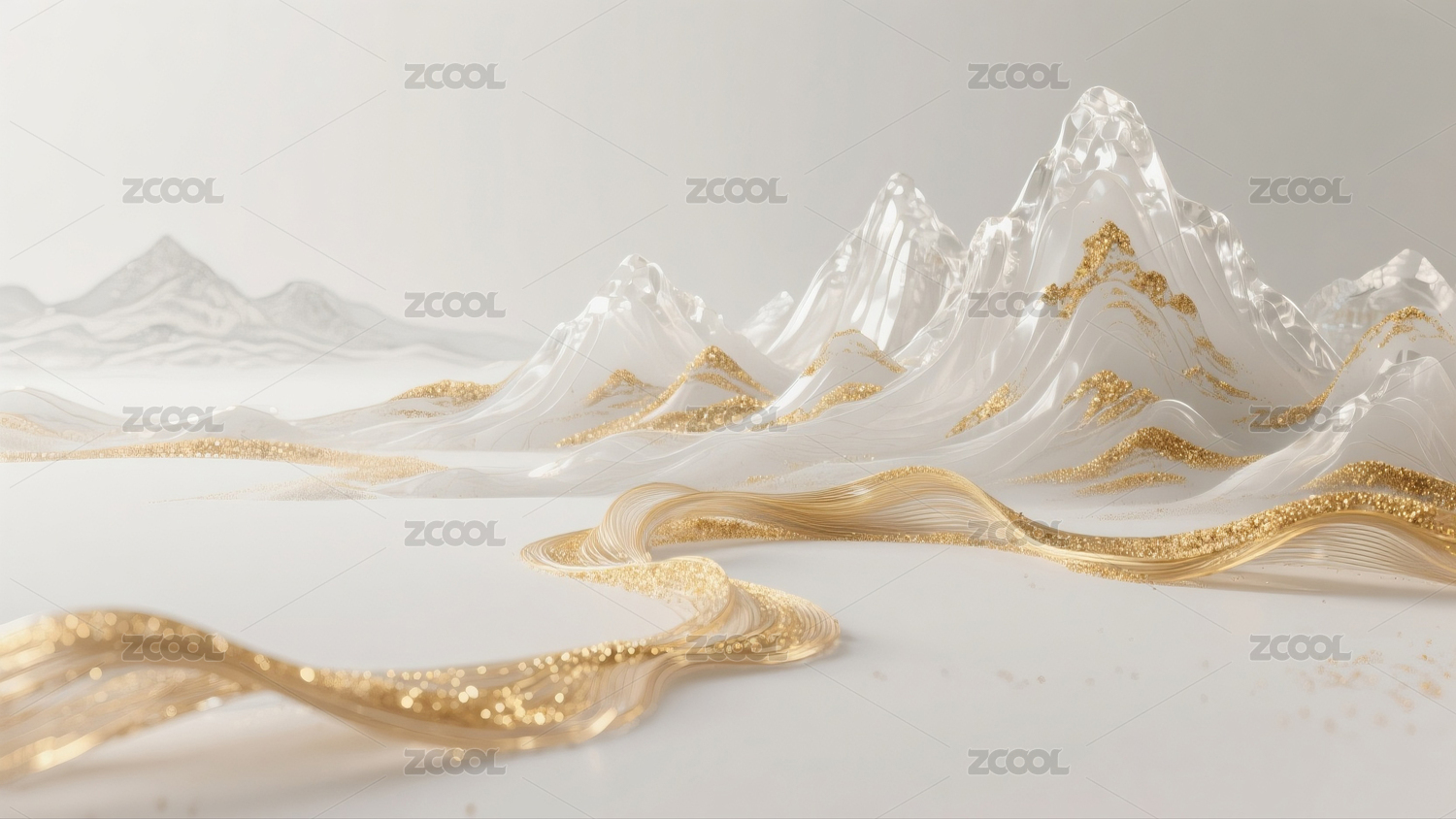 白色,玻璃,山脉,山,金色,线条,曲线,弯曲,水晶,国风