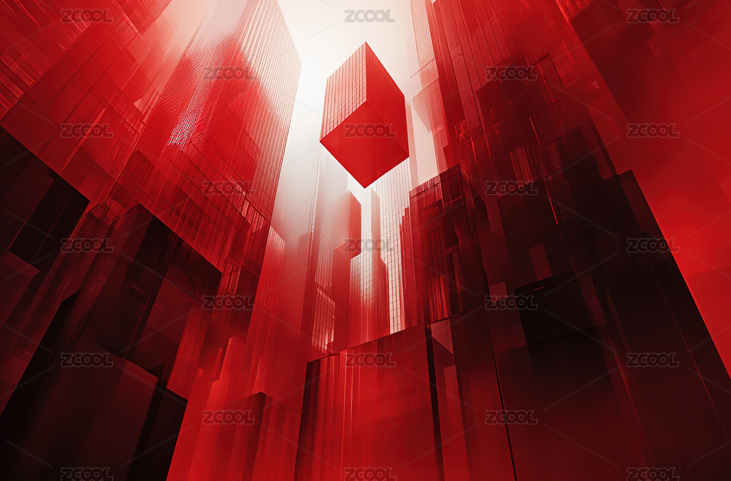 抽象,建筑,立体,几何,红色,色块,光影,构成,叠加,层次
