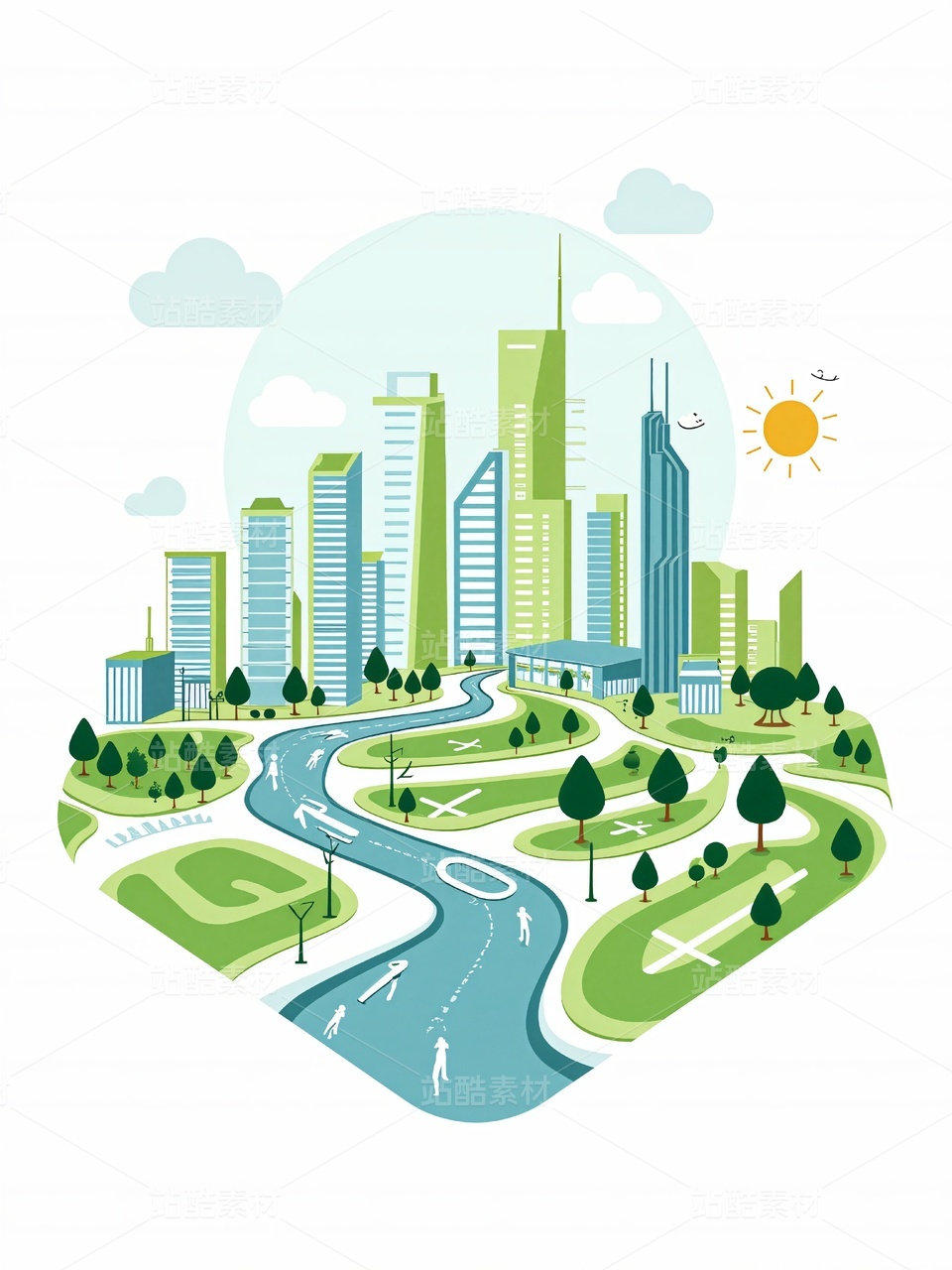 3款2.5D风格绿色环保城市主题PNG免抠素材