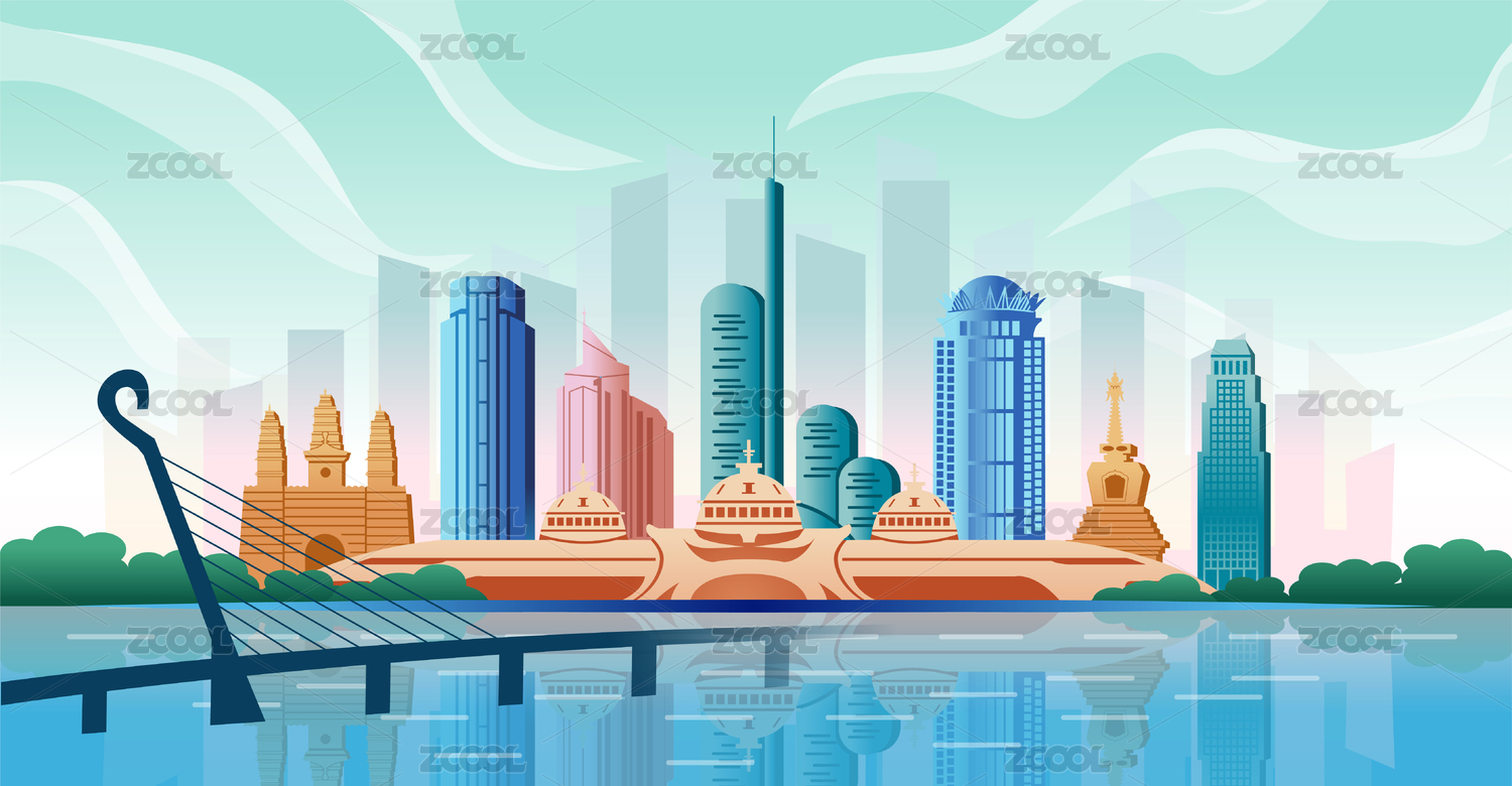 中国黑龙江哈尔滨市商务科技城市彩色插画