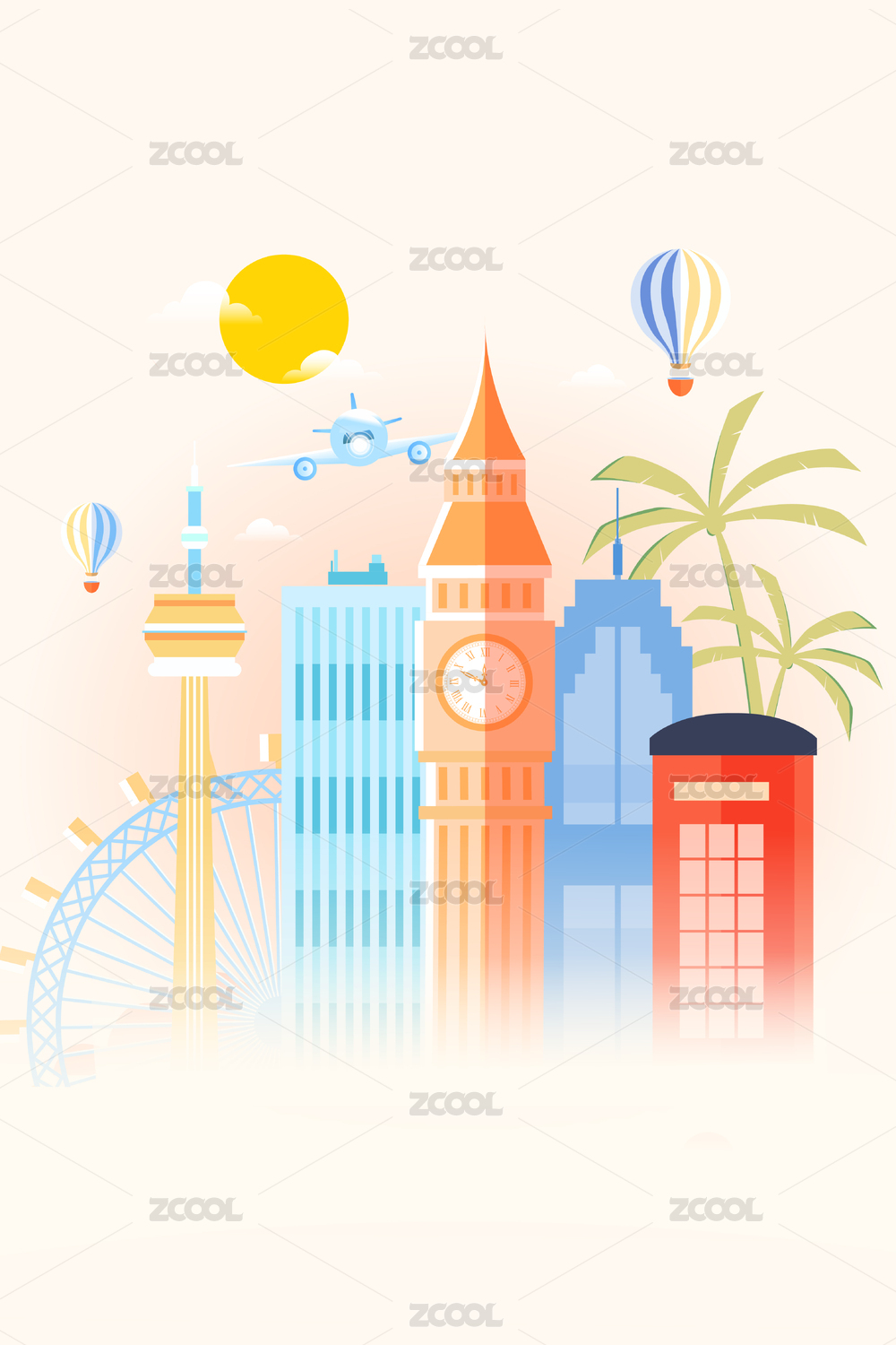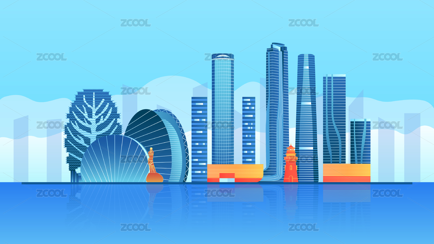蓝色商务风城市建筑插画埃菲尔铁塔