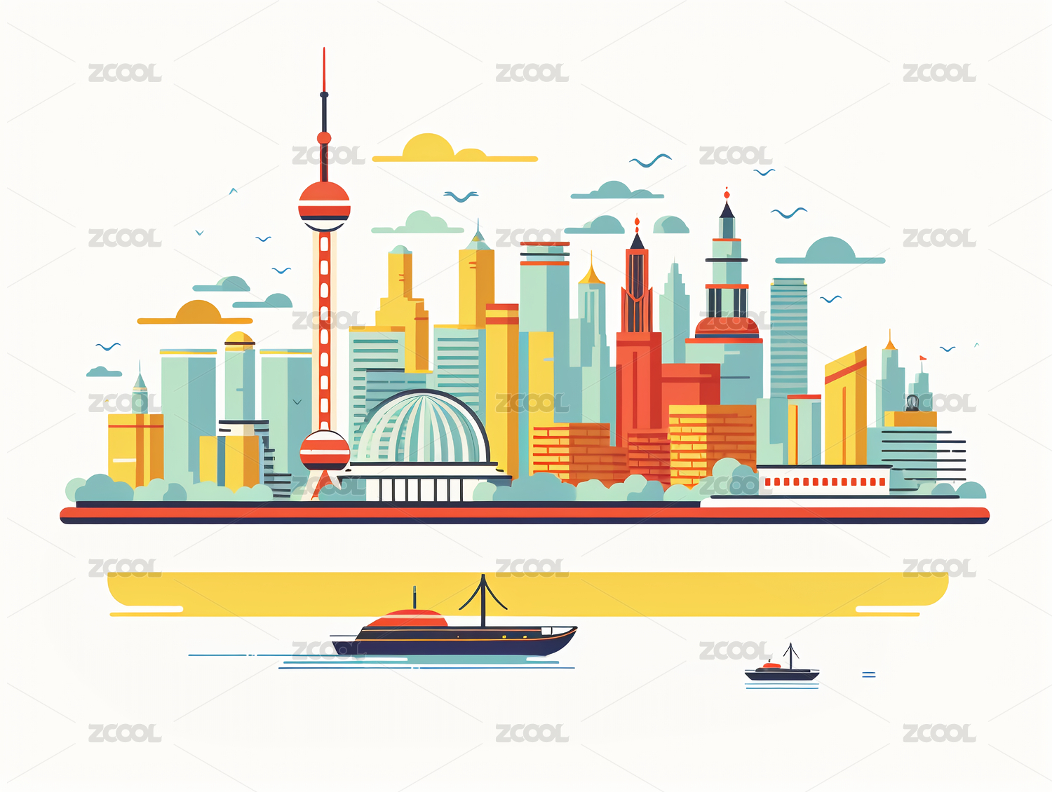 中国黑龙江哈尔滨商务科技城市彩色矢量插画