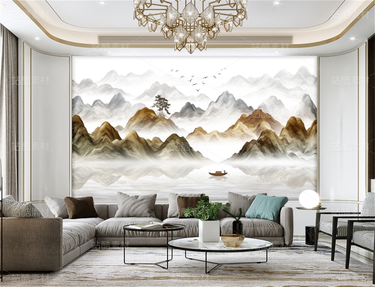 抽象装饰画 新中式山水画 意境山水 适用于家装,酒店,文化场所等,用于做:背景墙、隔断、移门,屏风、玄关。高清分层图可以用UV打印。
