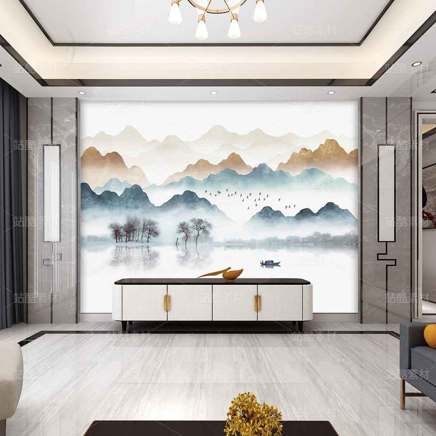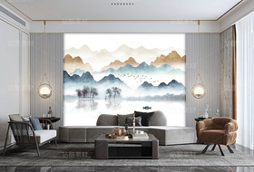 抽象装饰画 新中式山水画 意境山水 适用于家装,酒店,文化场所等,用于做:背景墙、隔断、移门,屏风、玄关。高清分层图可以用UV打印。