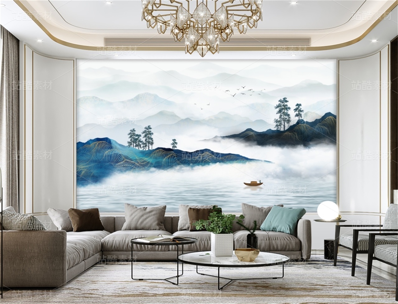 新中式山水画背景