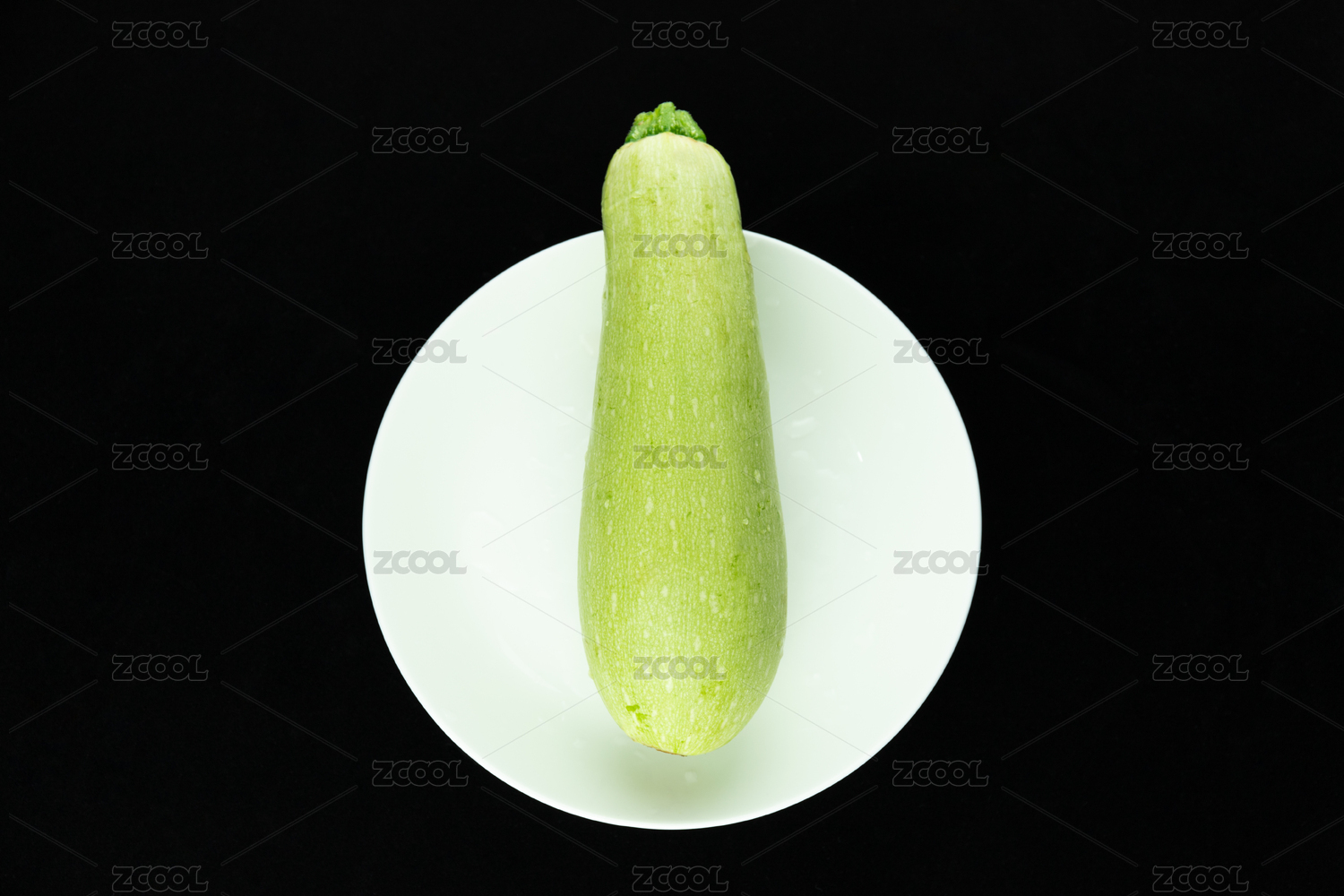 白色圆盘子里的新鲜绿色蔬菜角瓜