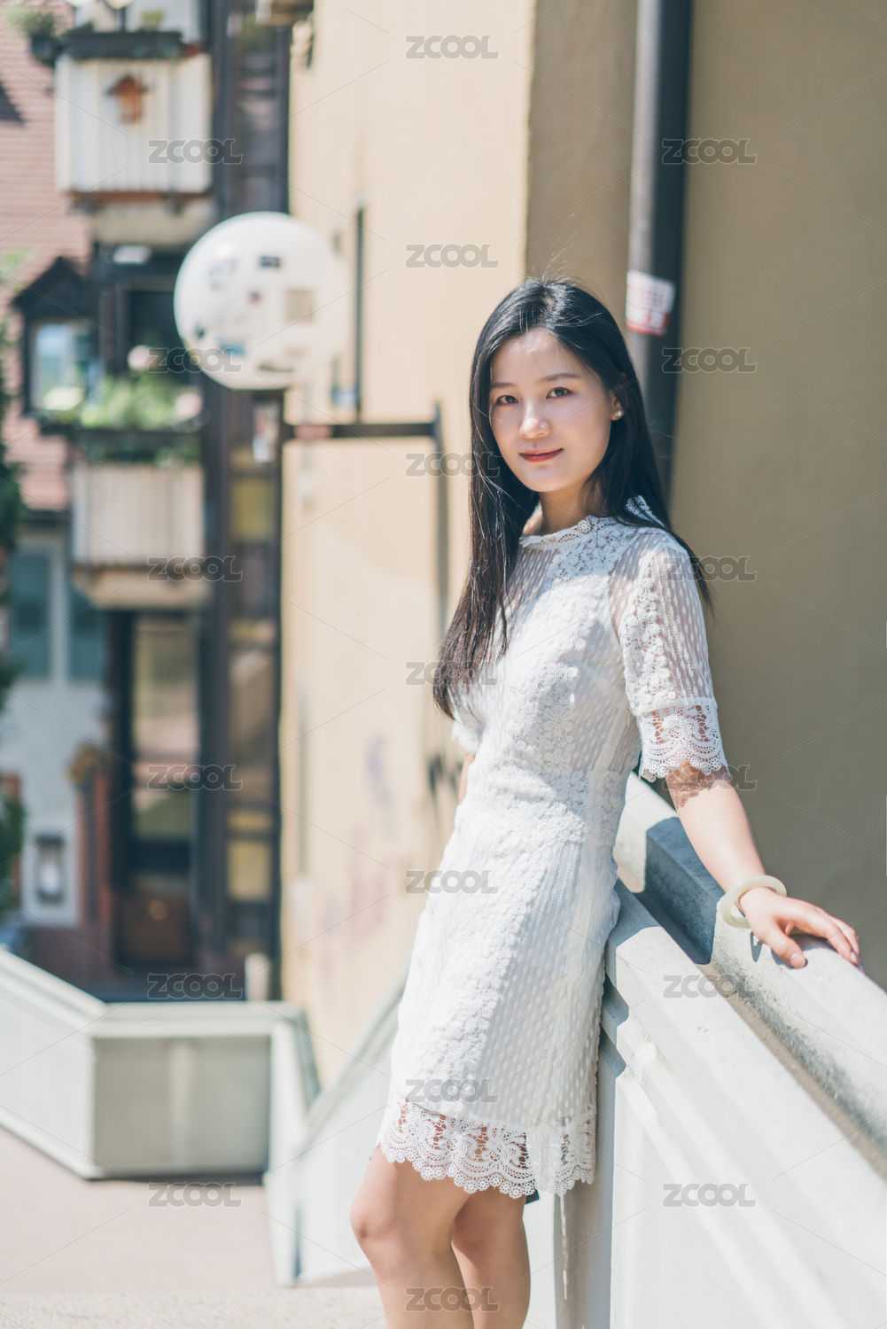 欧洲风格唯美气质白色蕾丝裙女生人像