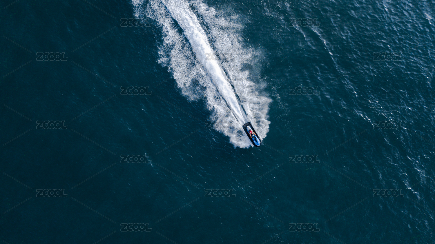 白昼,航拍,无人机视角,抽象的,海浪,快艇,行驶,上方,海洋
