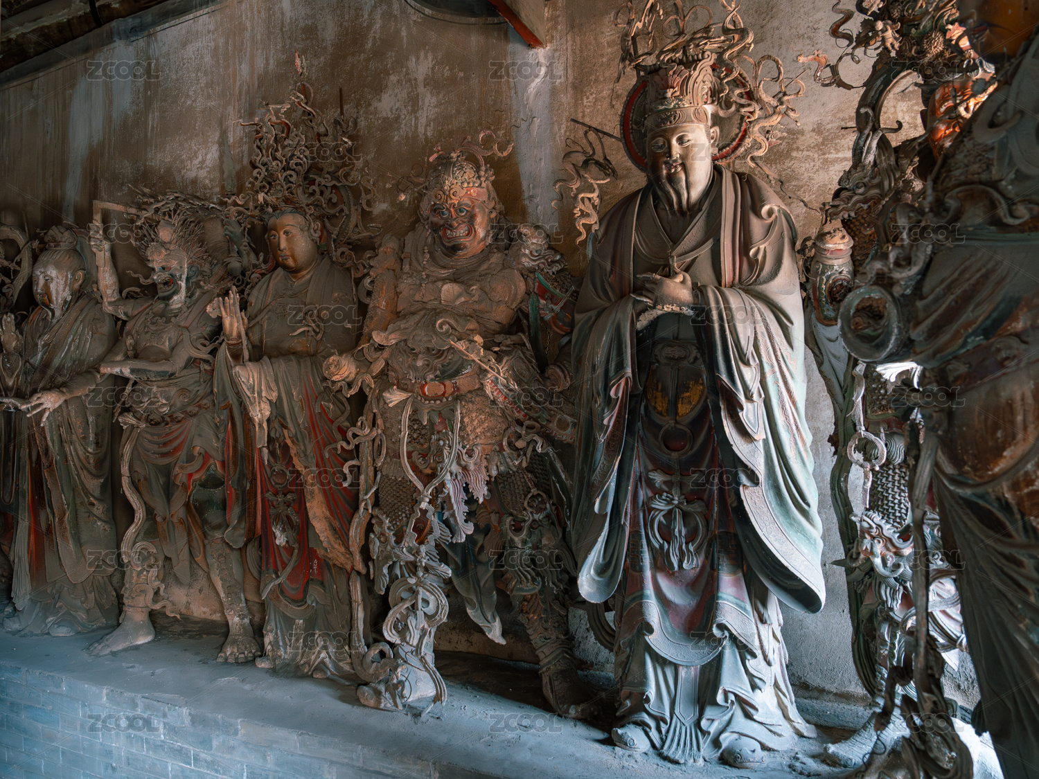 山西长治长子县崇庆寺彩塑鎏金泥塑