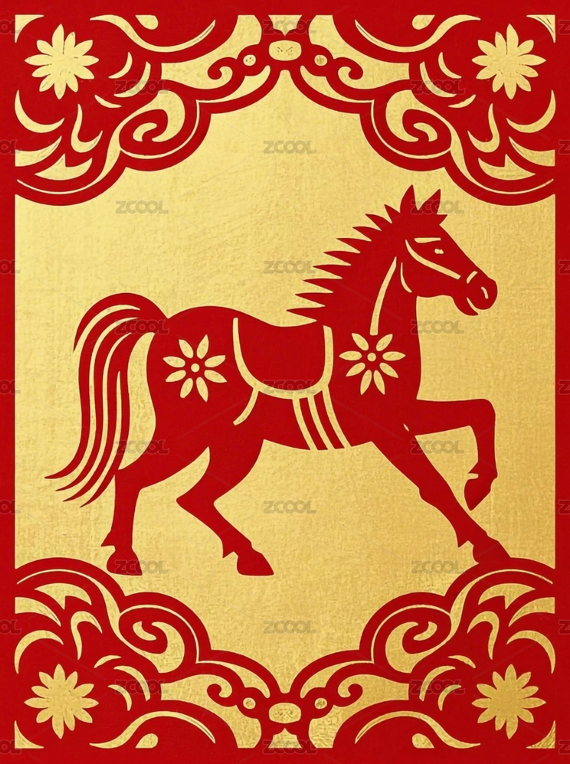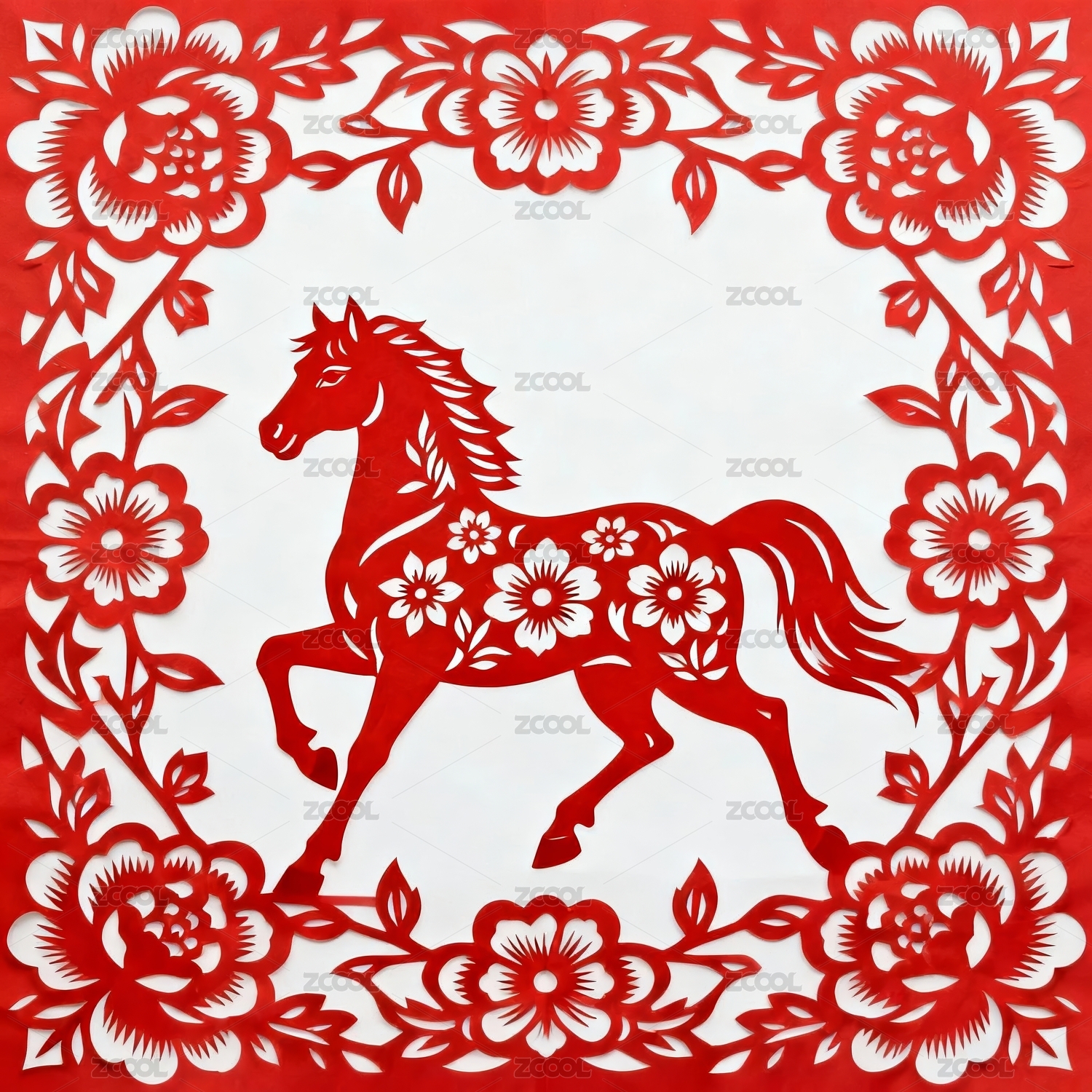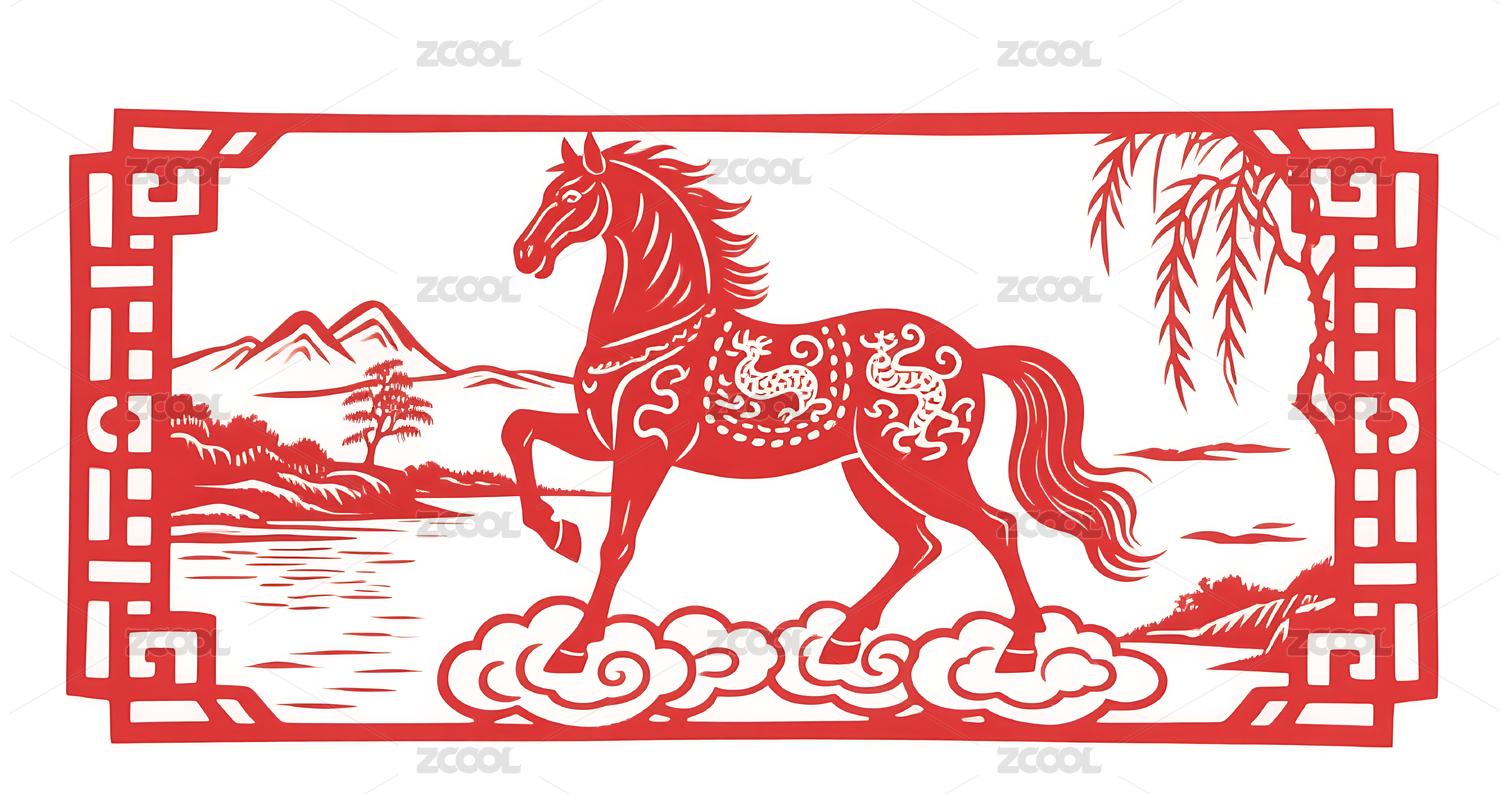 马年,动物,卡通,卡通手绘,窗花,剪纸,新年,过年,2026,元旦