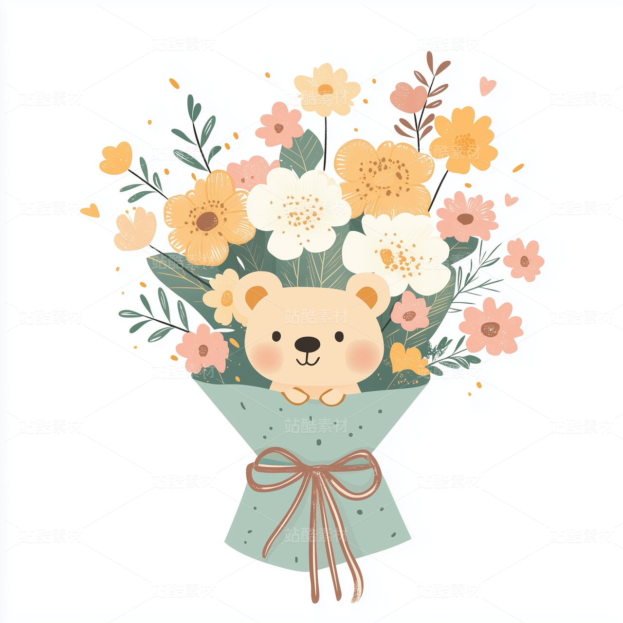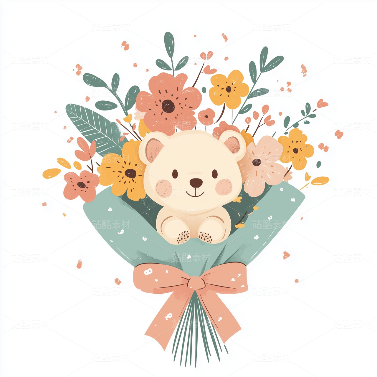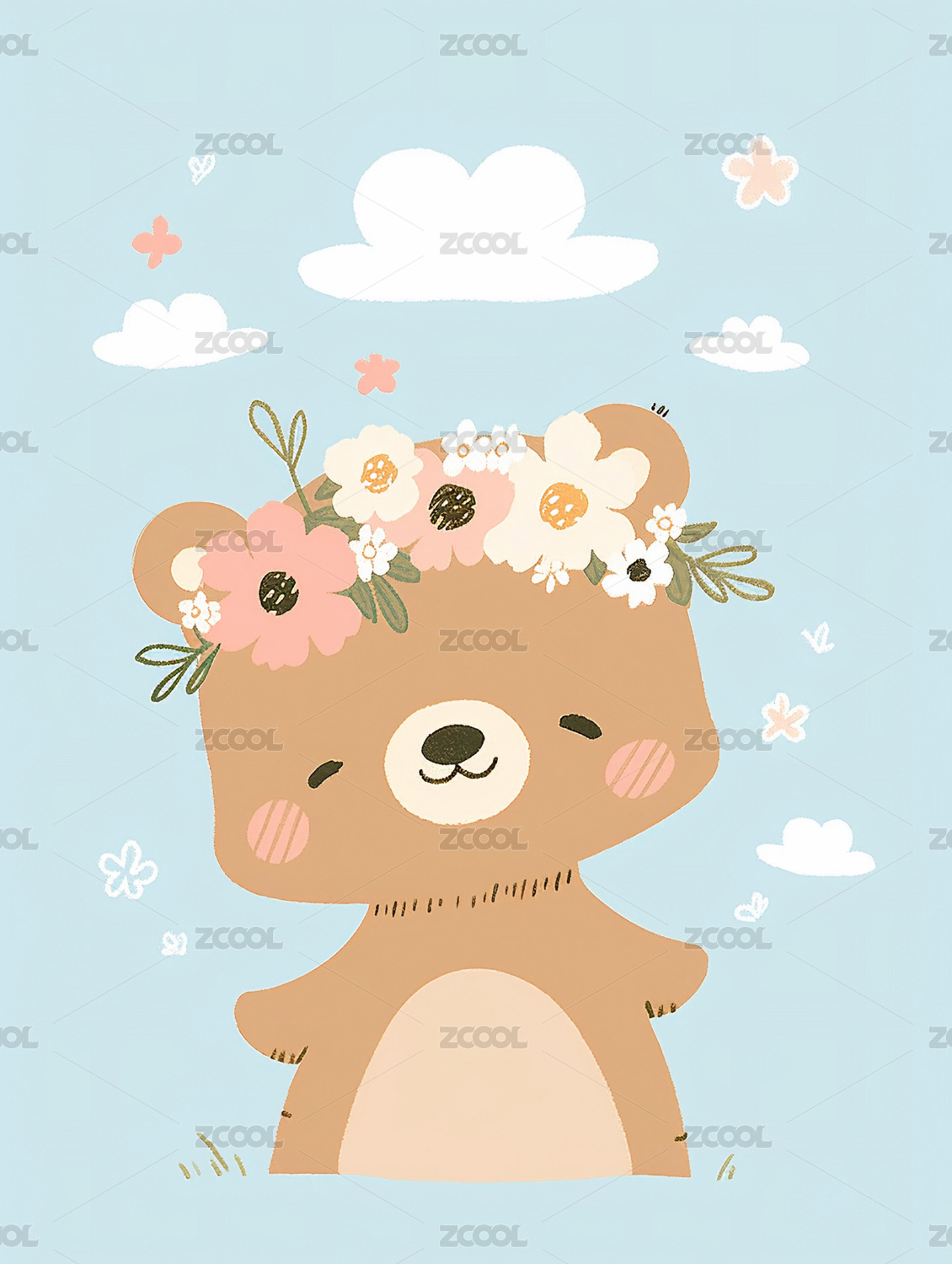 小熊,卡通,卡通形象,向日葵,儿童插画,植物,动物,蛋糕,装饰,设计