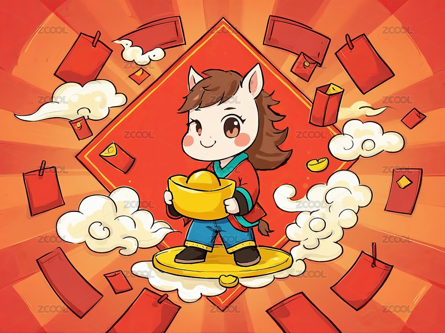 卡通六一儿童节木马儿童玩具矢量插画素材