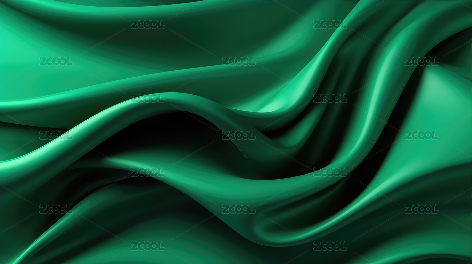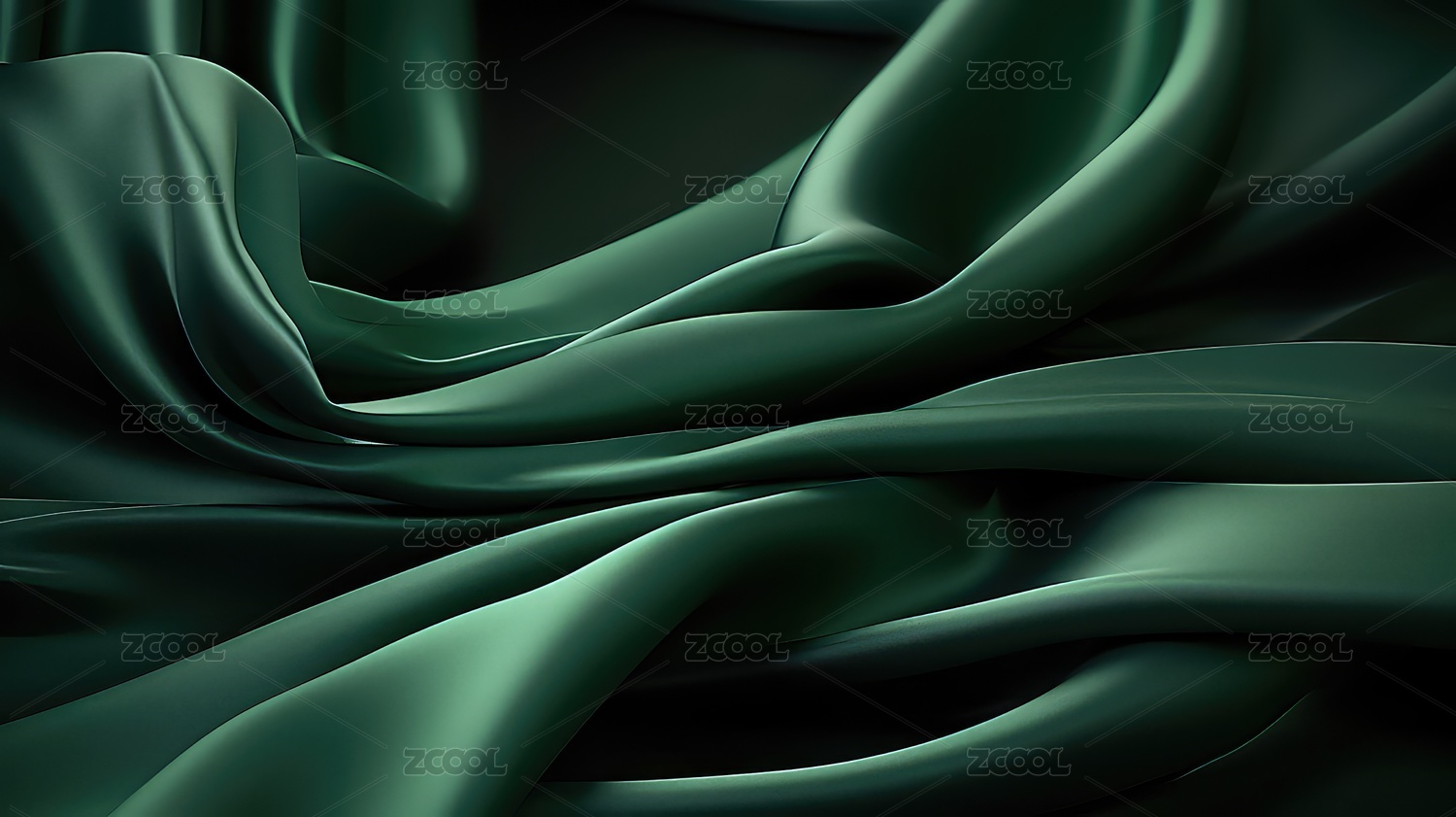 丝绸般质感的绿色布料褶皱和光影