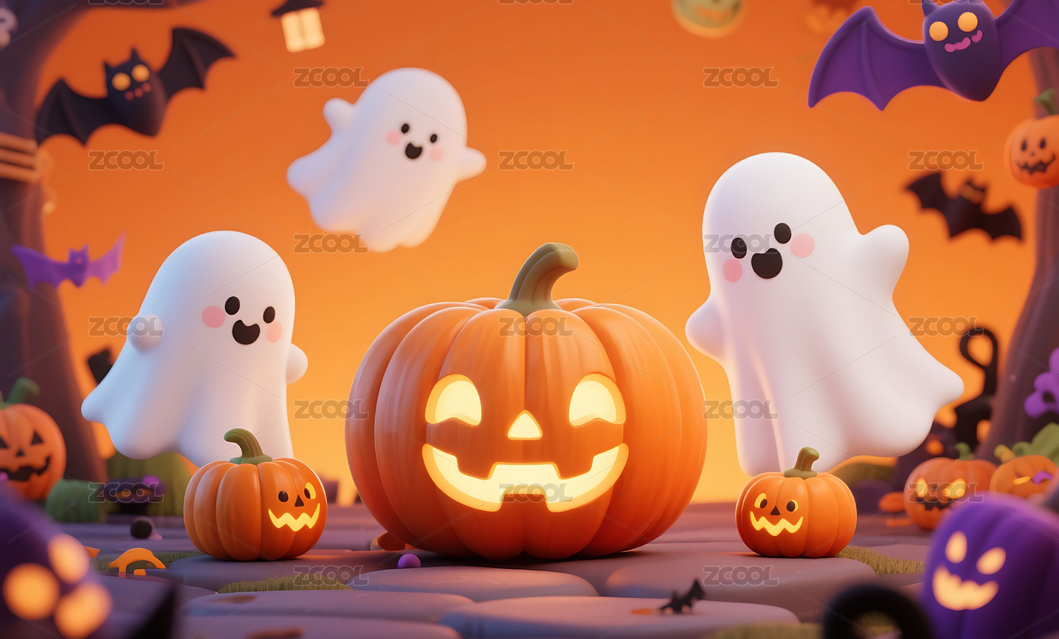 3D渲染万圣节场景南瓜怪兽三维恐怖背景